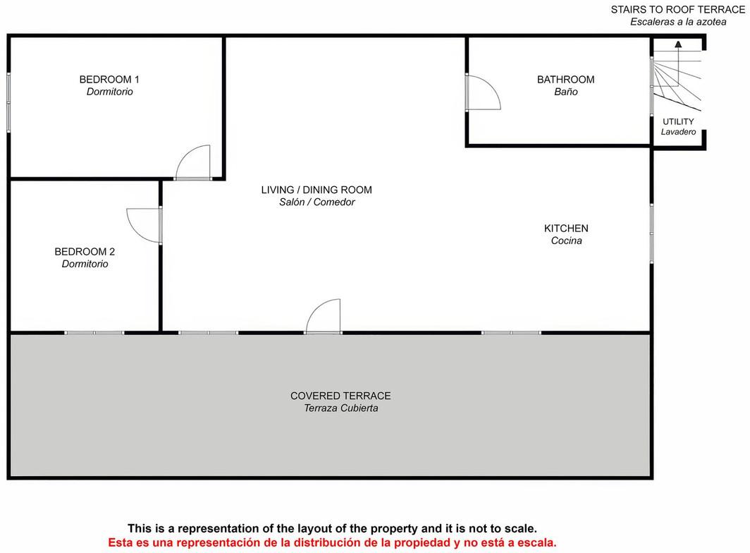 The property is all on one level and features a living room with open-plan kitchen, two bedrooms, and one bathroom, with a built area of 70 m². At the front of the house, there's a 32 m² porch, bringing the total constructed area on the plot to 102 m².