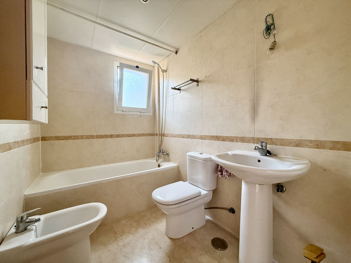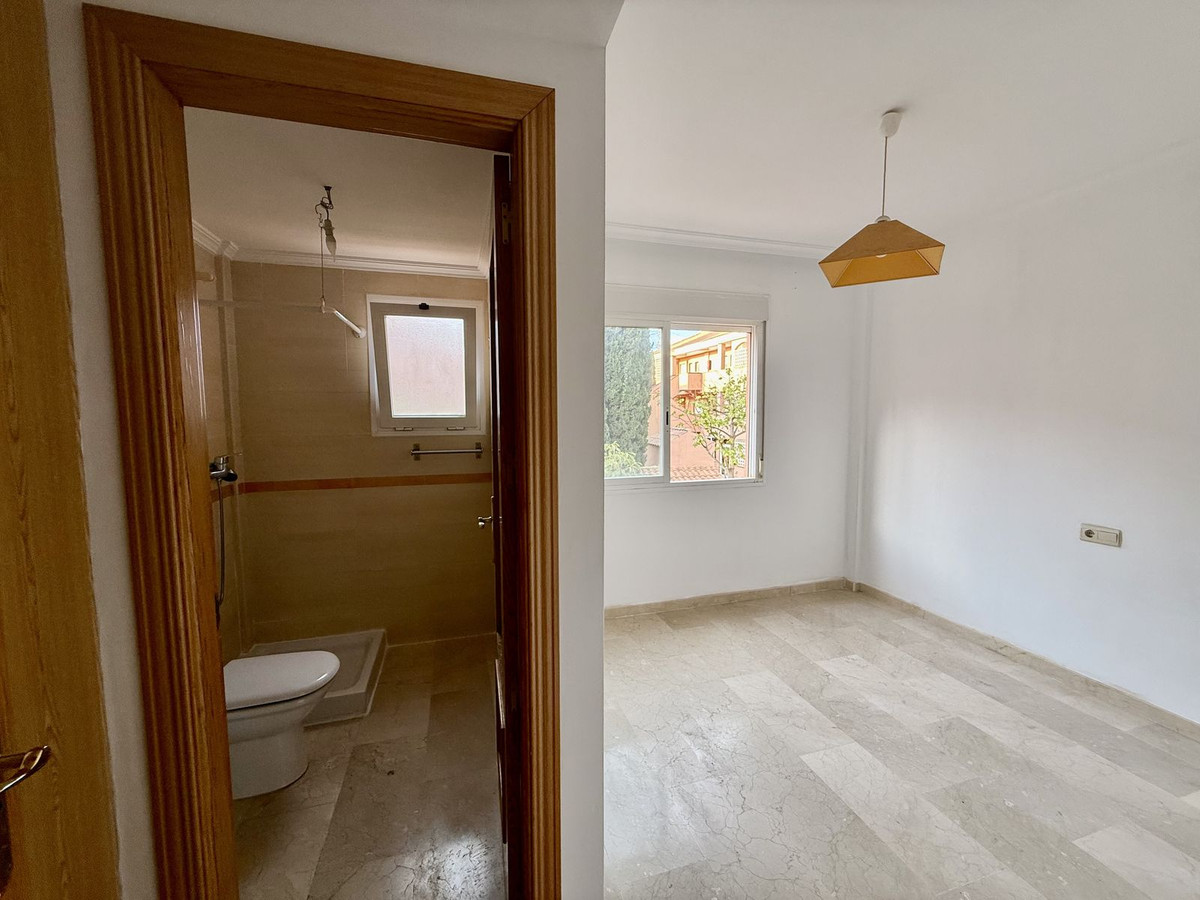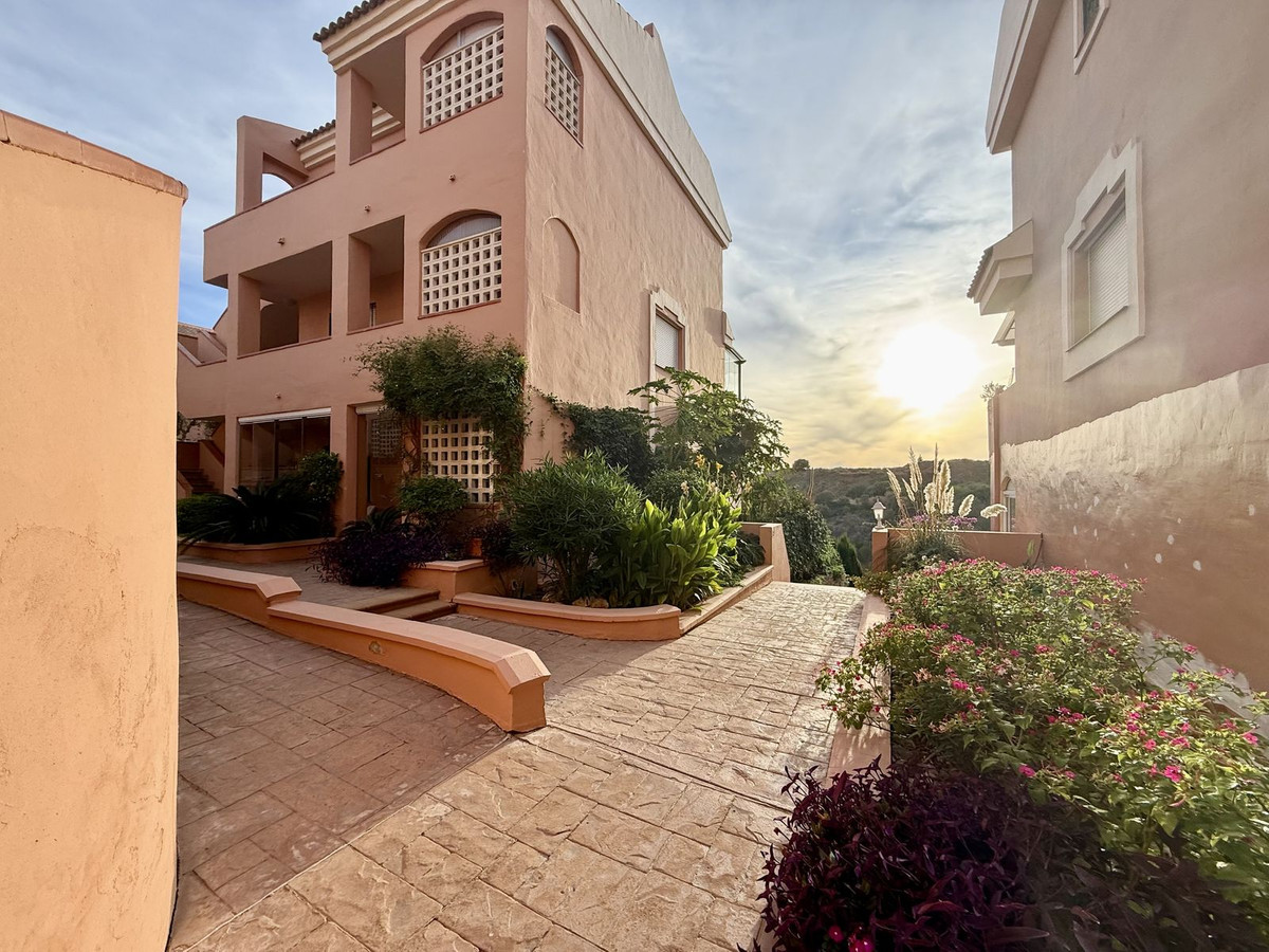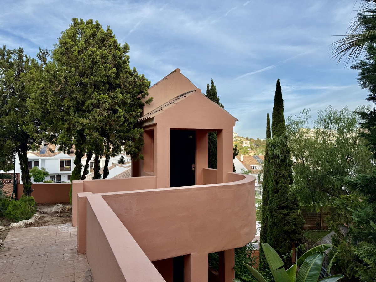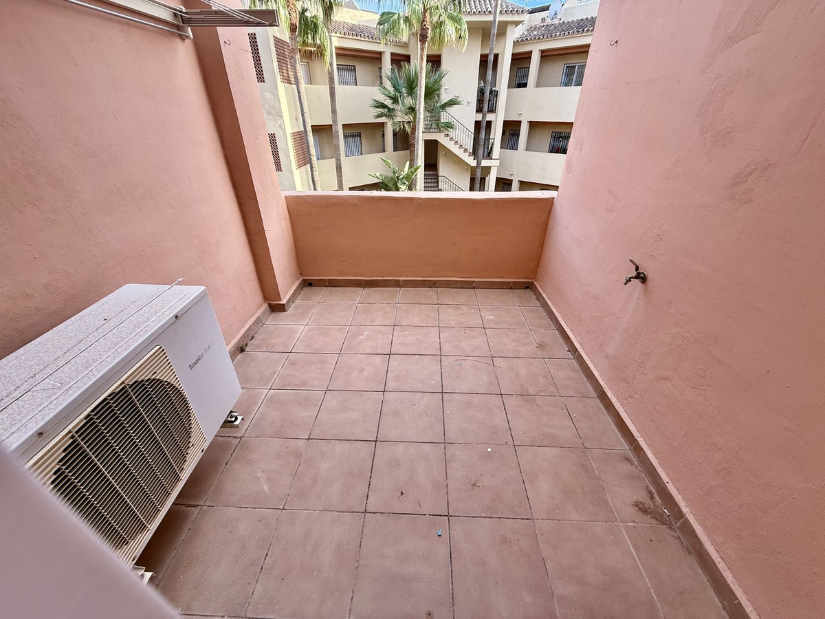 Duplex bas de gamme à Riviera del Sol, d'une superficie de 90 m², réparti sur 45 m² au rez-de-chaussée et 45 m² à l'étage. Le rez-de-chaussée comprend un salon-salle à manger avec accès à un jardin privé, des toilettes, une buanderie et une cuisine séparée non équipée, avec possibilité d'intégration au séjour. À l'étage, vous trouverez deux chambres avec placards intégrés, deux salles de bain complètes avec fenêtres (l'une avec baignoire et l'autre avec douche), un placard intégré supplémentaire dans le couloir et une terrasse avec vue latérale.