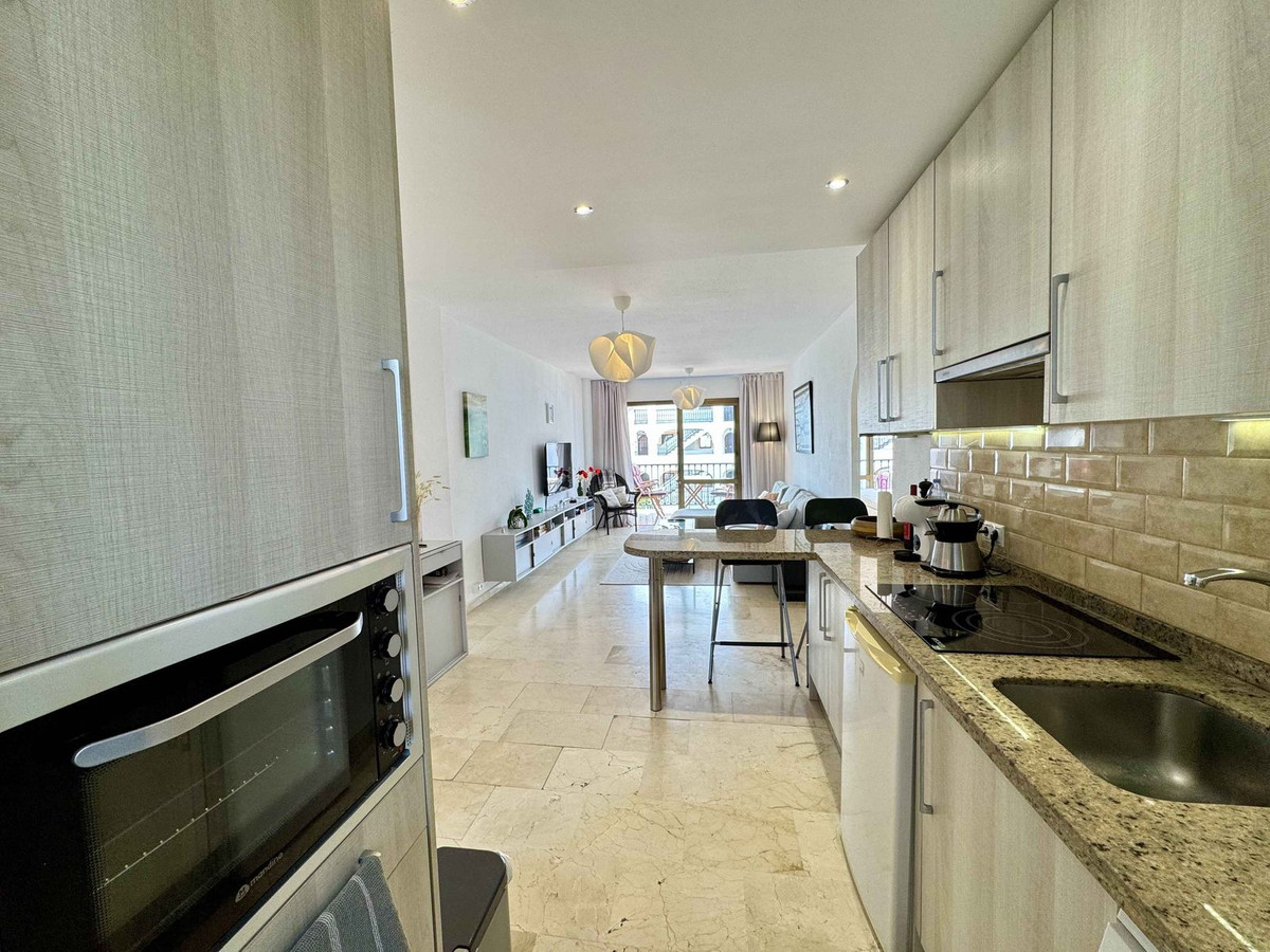 L'appartement est très bien entretenu ; dispose d'une cuisine ouverte entièrement équipée, de la climatisation dans la chambre principale et est vendu entièrement meublé.