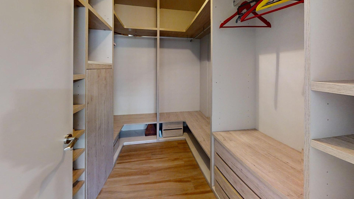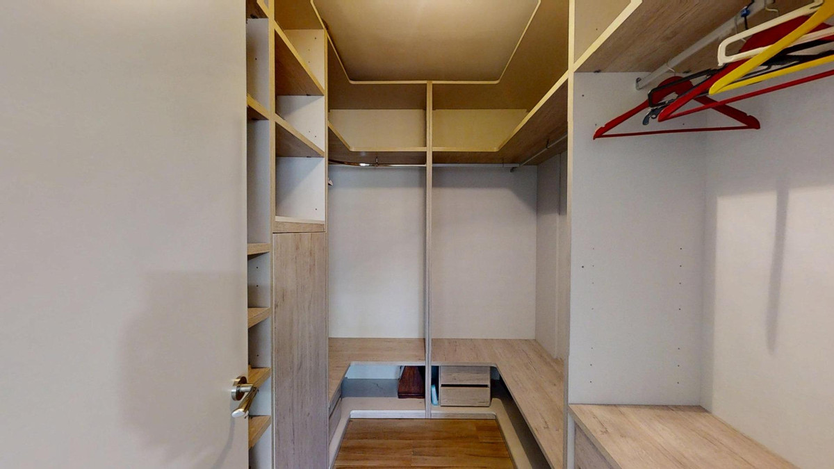 Chambre principale avec dressing élégant et salle de bain attenante, créant une retraite privée haut de gamme.