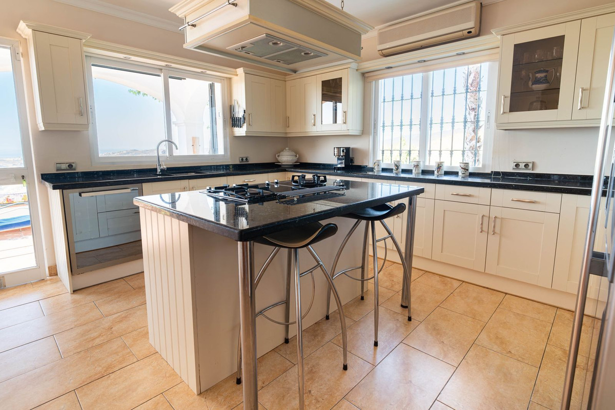 Depuis sa position dominante à Mijas La Nueva, cette villa bénéficie d'une vue panoramique exceptionnelle s'étendant du littoral méditerranéen aux montagnes environnantes, avec des couchers de soleil spectaculaires lorsque le soleil disparaît derrière les sommets. La vue est à couper le souffle, inspirante et véritablement incomparable.