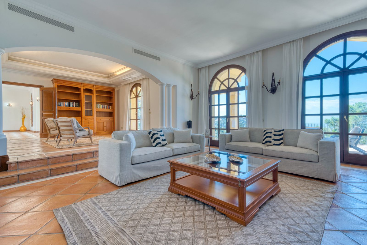 Plongez dans un luxe intemporel avec cette magnifique villa de six chambres, à l'intimité absolue, située dans l'un des domaines privés et sécurisés les plus prestigieux d'Europe. Implantée sur un vaste terrain de 6 173 m², cette impressionnante résidence offre une intimité totale, une vue imprenable sur la Méditerranée et les montagnes environnantes, et plus de 970 m² d'espace de vie raffiné. Une allée majestueuse mène à l'entrée principale et à un garage souterrain pour trois voitures. À l'intérieur, un magnifique atrium central baigne la maison de lumière naturelle, reliant harmonieusement la cuisine entièrement équipée, la salle à manger formelle et le salon en contrebas, conçu pour des réceptions élégantes et une vie de famille décontractée. Le niveau principal comprend trois suites spacieuses, tandis qu'au niveau inférieur, la maison se transforme en un véritable havre de paix privé, avec un élégant salon-bar, une seconde cuisine, une salle de jeux, une salle de sport, un sauna, un hammam et trois suites supplémentaires avec accès direct au jardin.