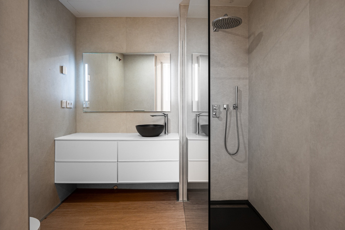 L'appartement est entièrement meublé et dispose de placards intégrés, dont un dressing dans la suite parentale. Le chauffage au sol est assuré par un ascenseur et vous conduit directement à votre porte. La conception, signée par l'architecte primé Rafael de La-Hoz, allie style avant-gardiste et confort moderne. Doté de deux places de parking en sous-sol, cet appartement est à la fois pratique et luxueux.