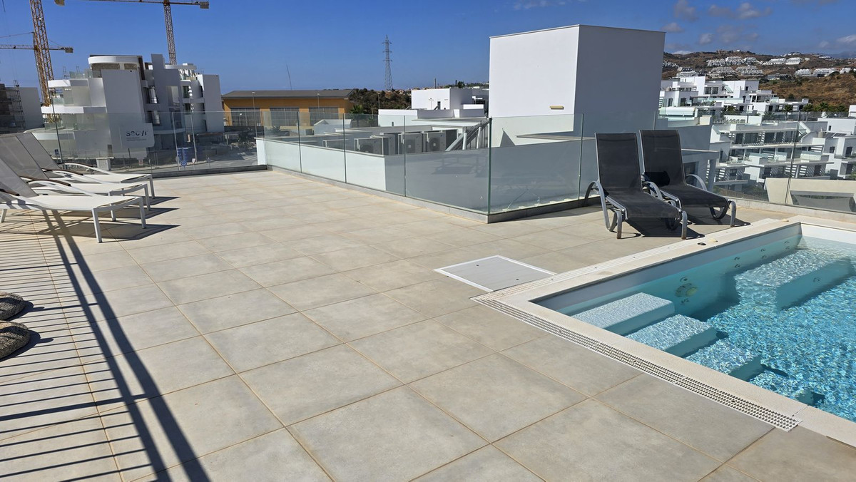 This penthouse in La Cala de Mijas offers 4 bedrooms, 3 bathrooms, 124m² of interior space and nearly 200m² of terraces with a private pool, set within the Casa Banderas complex completed in 2019.