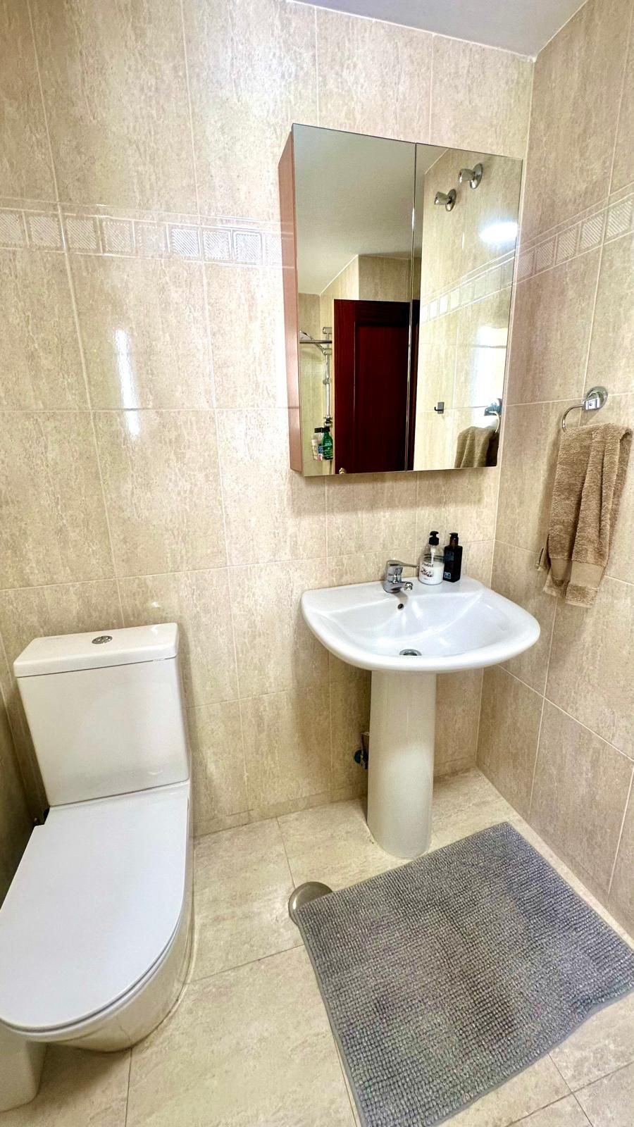 L'appartement comprend une cuisine entièrement équipée et une salle de bain complète.