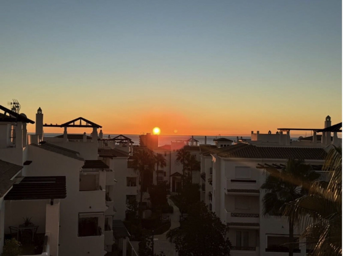 Sublimez votre style de vie dans ce penthouse sophistiqué situé au dernier étage de la prestigieuse Résidence Duquesa Phase 1, une résidence sécurisée située dans le charmant quartier côtier de La Duquesa, à Manilva. Doté de 2 chambres et de 2 salles de bains, ce bien entièrement meublé allie élégance méditerranéenne et confort moderne, ce qui en fait un refuge idéal pour vivre toute l'année, passer des vacances ou investir. Perché à un niveau supérieur par rapport aux bâtiments environnants pour une intimité optimale, son orientation est vous garantit des levers de soleil époustouflants directement sur la mer. Le soleil matinal baigne la terrasse jusqu'à 15h30 environ en été, avant de laisser place à une ombre agréable l'après-midi, idéale après une journée à la plage.