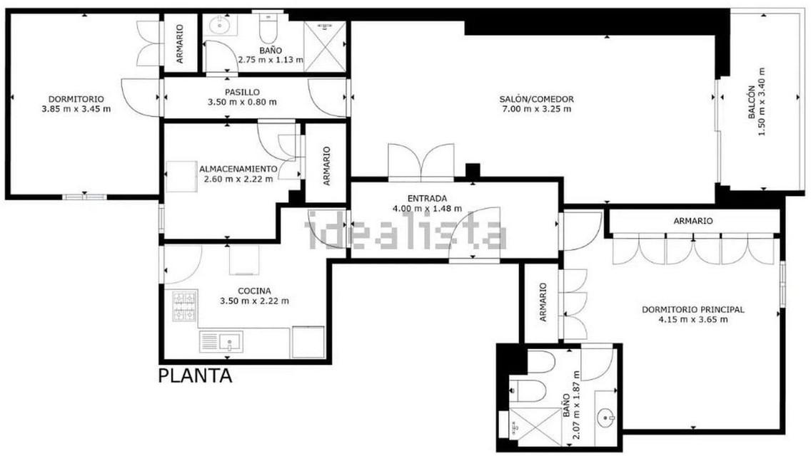 3 chambres, 2 salles de bains, surface construite de 124 m².