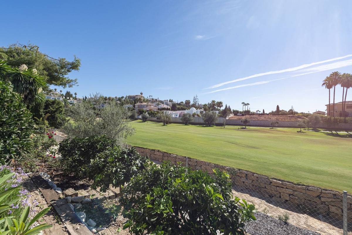 Bienvenue dans cette magnifique villa de plain-pied, idéalement située dans le quartier prisé de Mijas Golf. Vous profiterez d'une vue dégagée sur le jardin luxuriant et la verdure du parcours de golf ; un havre de paix où la tranquillité et le chant des oiseaux créent une atmosphère unique.