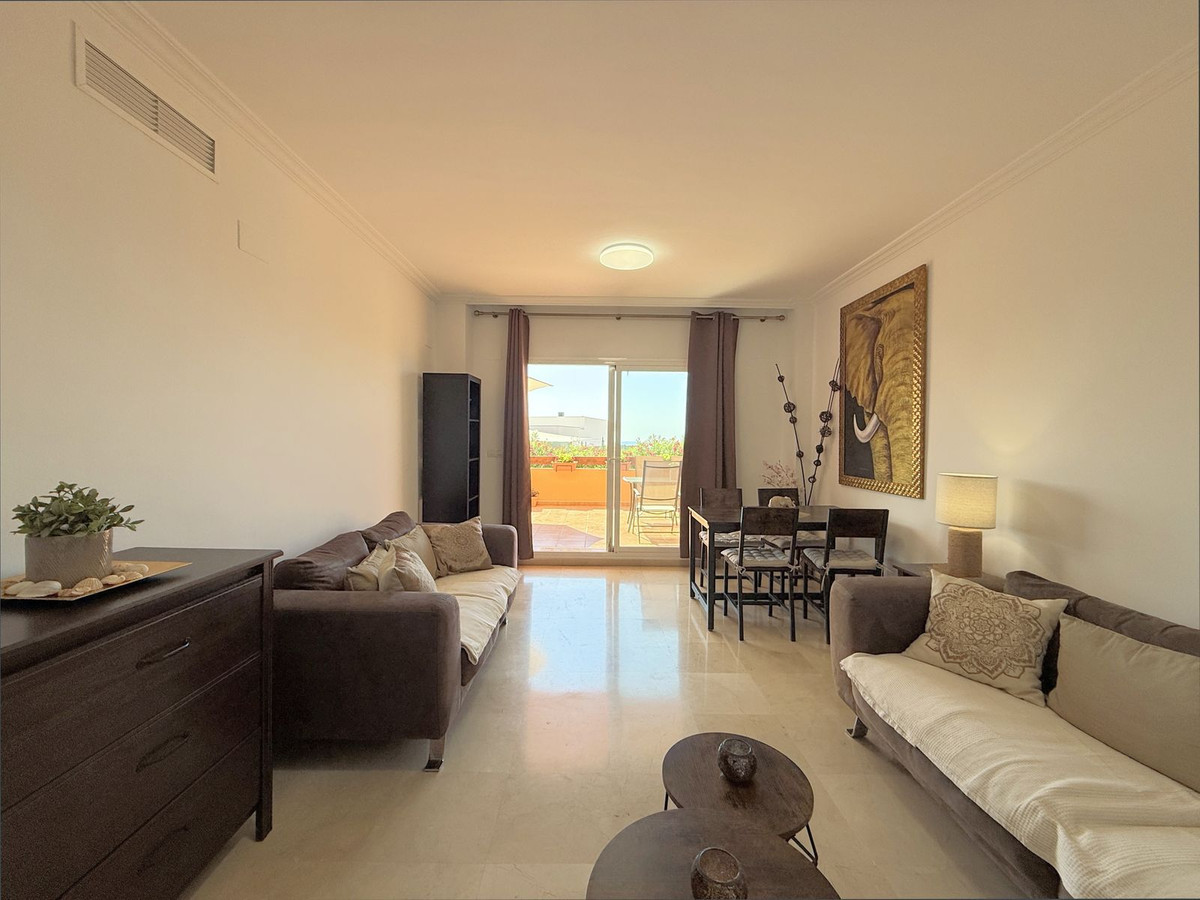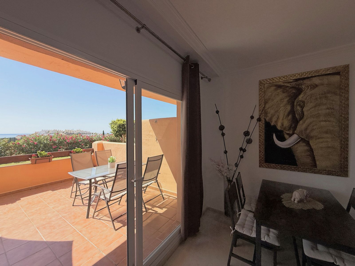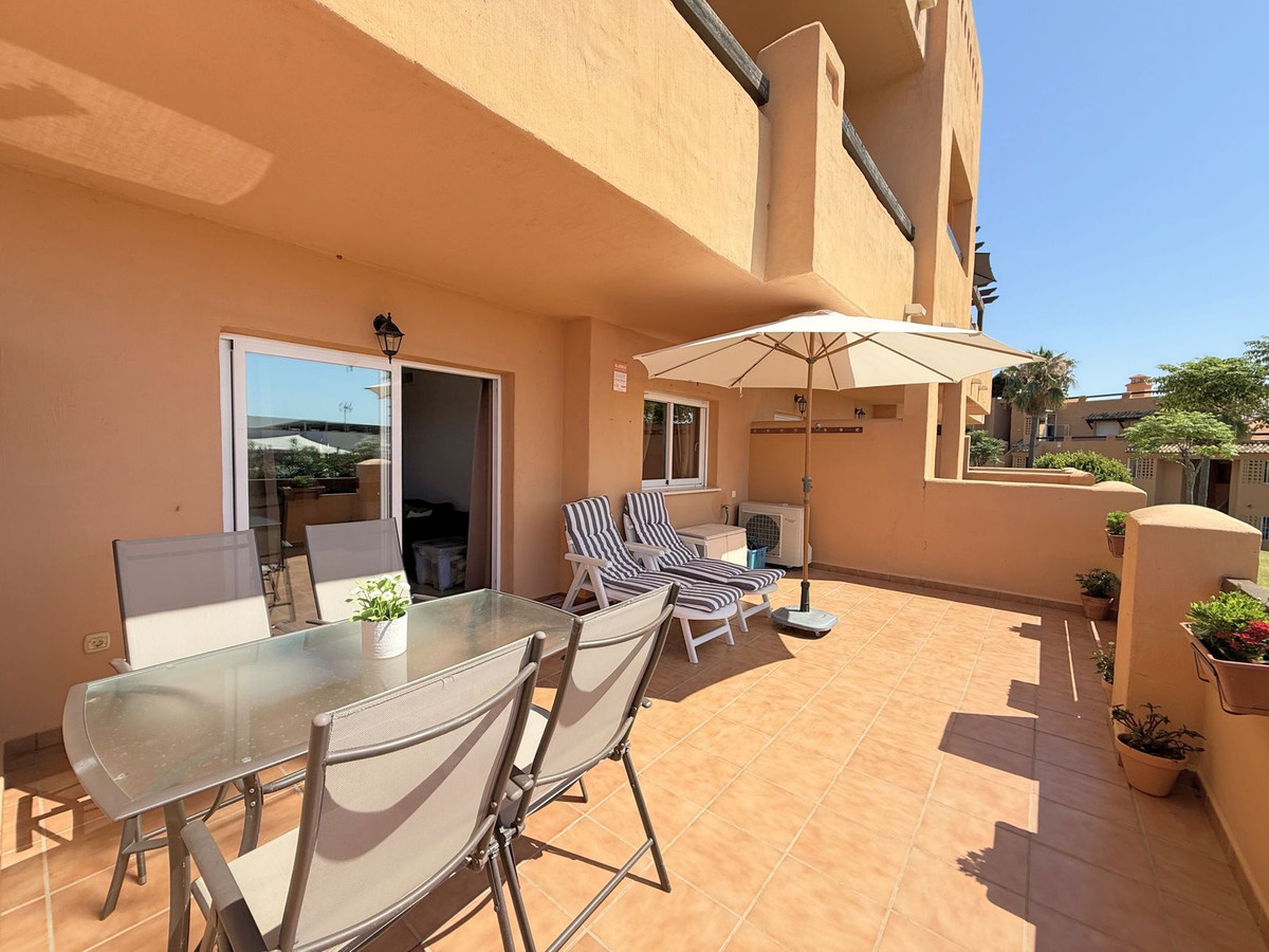 Situé à Casares Costa, un quartier en plein essor entouré de nature, de prestigieux golfs tels que Finca Cortesin et Doña Julia, et de résidences exclusives, ce confortable appartement en rez-de-chaussée se distingue par sa spacieuse terrasse avec vue partielle sur la mer et son cadre paisible et privé, idéal pour profiter du climat méditerranéen toute l'année. À seulement 4 minutes en voiture des ports de plaisance de La Duquesa et d'Estepona, et à proximité du futur hôtel Hilton, son emplacement offre un accès privilégié aux plages de sable, à une charmante promenade, aux restaurants, aux bars de plage et aux espaces de loisirs. En parfait état et prêt à emménager, ce bien fonctionnel de plain-pied comprend deux chambres spacieuses, deux salles de bains, un séjour lumineux avec accès direct à la grande terrasse privée et une cuisine rénovée avec buanderie récemment construite, offrant espace et confort supplémentaires. Orienté sud-ouest, l'appartement bénéficie d'une lumière naturelle tout au long de la journée et d'une atmosphère chaleureuse et relaxante. Située dans une résidence sécurisée avec accès piétonnier à la plage en environ 12 minutes, elle dispose de jardins tropicaux luxuriants, de six piscines (dont une ouverte toute l'année), d'un service de conciergerie 24h/24, de la climatisation réversible, d'un parking souterrain et d'un cellier. De plus, elle dispose d'une licence touristique valide, ce qui en fait un investissement idéal pour un usage personnel ou pour des locations saisonnières ou à long terme. Une opportunité unique à ne pas manquer !