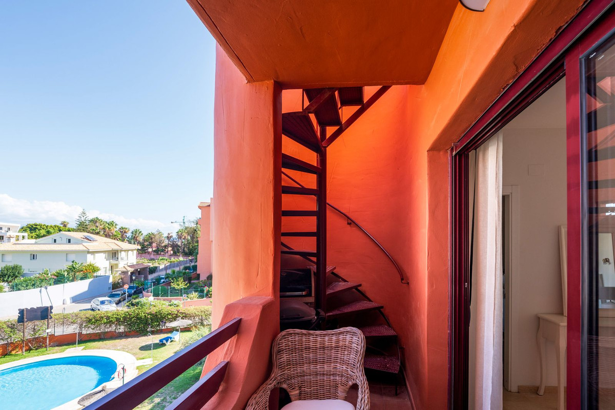Ce penthouse est situé dans une résidence calme et sécurisée avec piscine et magnifiques jardins paysagers. En quelques minutes, vous rejoindrez les plages de sable, le port de plaisance de Puerto de la Duquesa, ses restaurants et bars, et le charmant village de pêcheurs de Castillo de la Duquesa. Pour les amateurs de golf, le La Duquesa Golf & Country Club est à proximité, et les prestigieux parcours d'Estepona et de Sotogrande sont à seulement 10 minutes. Marbella et Gibraltar sont accessibles en 25 minutes, et l'aéroport de Malaga en moins d'une heure.