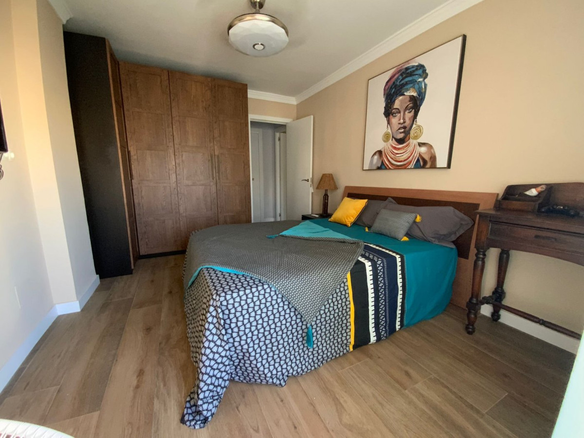 Deux chambres spacieuses et très lumineuses avec accès à la terrasse. L'une d'elles dispose d'une salle de bain attenante. Toutes deux sont équipées de grandes armoires et d'un lit double.