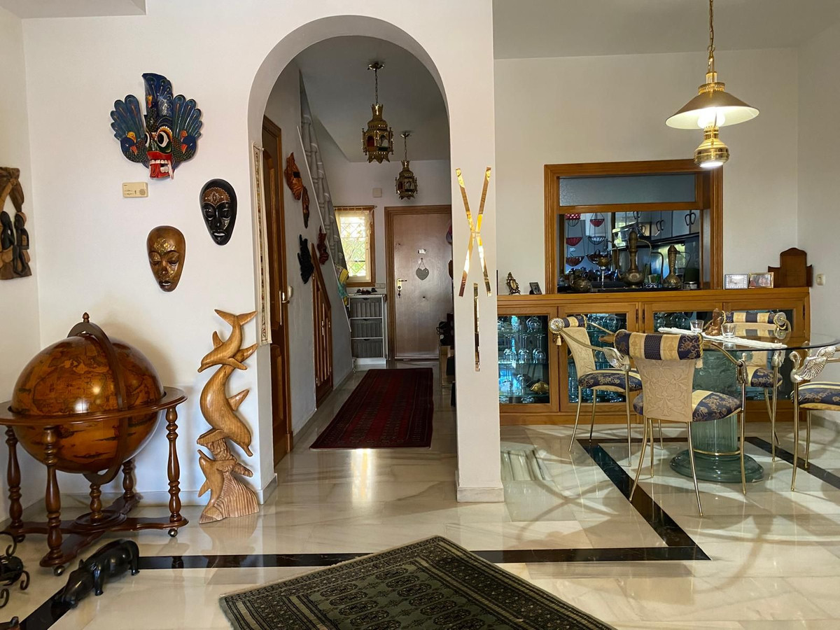 Fantastique maison jumelée à TORREQUEBRADA, dans le meilleur quartier de Benalmádena, au sein d'un lotissement résidentiel. Avant d'entrer, vous découvrirez un charmant petit jardin où vous pourrez bronzer l'après-midi. En entrant, vous accéderez au spacieux salon, orné d'une cheminée en marbre qui apporte style et chaleur, idéal pour des moments de détente. Il est relié à la cuisine entièrement équipée par un passe-plat et une buanderie avec fenêtre. Des toilettes se trouvent également au rez-de-chaussée. Lumineuse grâce à son exposition est-ouest (soleil du matin et de l'après-midi), cette maison est équipée de la climatisation et d'une pompe à chaleur. Le salon donne accès à une terrasse couverte et communique avec une autre terrasse accessible par un escalier, où vous pourrez vous détendre, bronzer et profiter de barbecues en famille ou entre amis. À l'étage supérieur, vous trouverez deux chambres extérieures. La chambre principale est très spacieuse, avec sa salle de bain attenante, ses placards intégrés et sa terrasse offrant une magnifique vue panoramique. La deuxième chambre est également spacieuse et dispose d'une salle de bain attenante. Le terrain communautaire, fermé par un portail automatique, offre un parking pour plusieurs voitures. La résidence comprend une grande piscine commune (semi-olympique, ouverte toute l'année), des pelouses et des jardins tropicaux. Le jardinier s'occupe de l'entretien des jardins privés et communs, dont la consommation d'eau est incluse dans les charges mensuelles de la résidence. La résidence est située dans un quartier résidentiel calme et bien desservi. Idéal pour les amateurs de golf, elle est à proximité immédiate de l'un des meilleurs parcours de la Costa del Sol (TORREQUEBRADA GOLF). Torrequebrada abrite plusieurs écoles et hôpitaux, et se trouve à seulement 2 km des plages et des supermarchés de la région. VISITES RECOMMANDÉES !