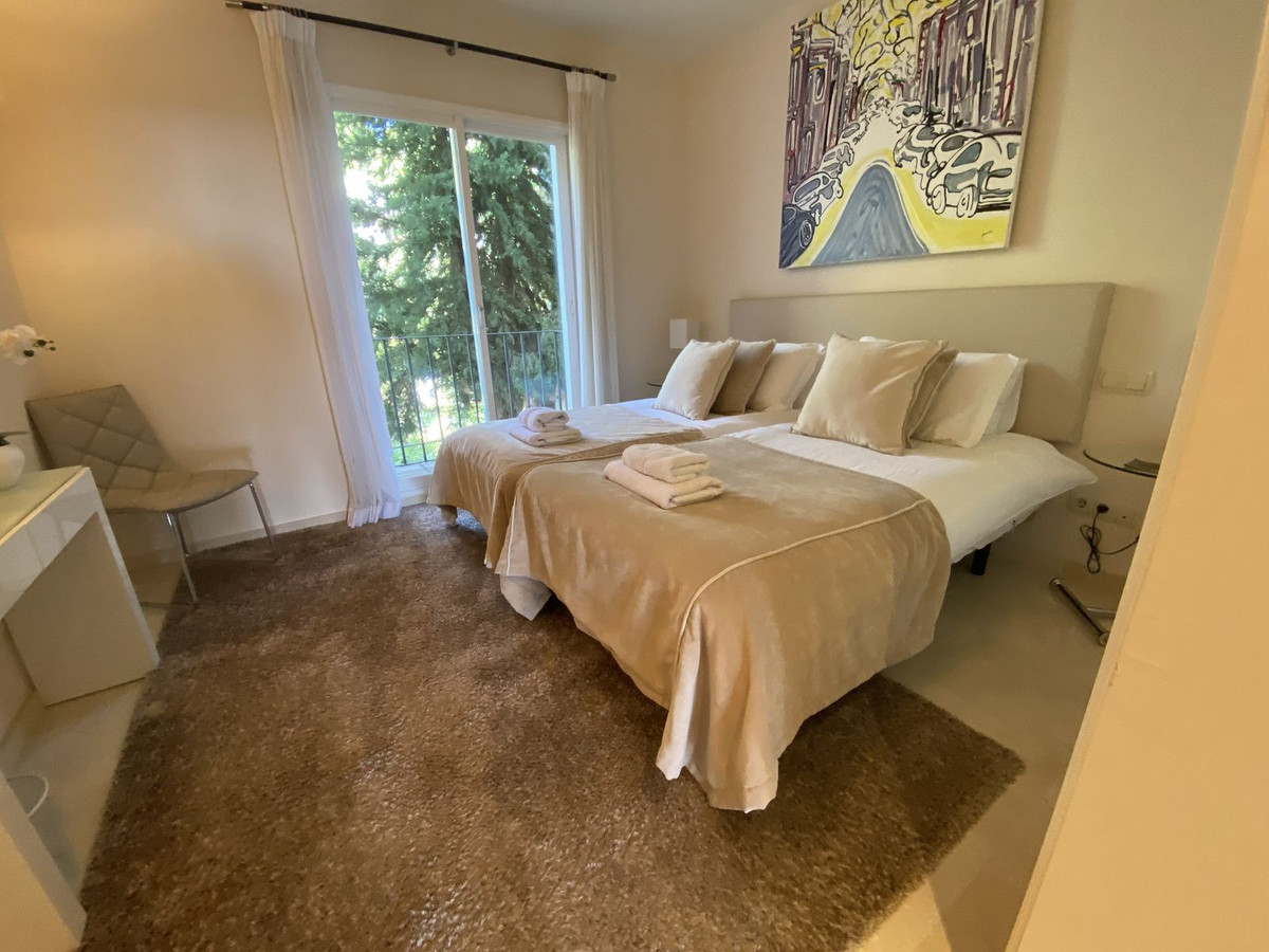 Superbe propriété à Altos de La Quinta, cet appartement au premier étage offre une vue imprenable sur les jardins luxuriants et le golf de La Quinta, jusqu'à la mer Méditerranée. Situé dans une impasse calme et indépendante, il dispose d'une place de parking privée et est à l'abri des regards.