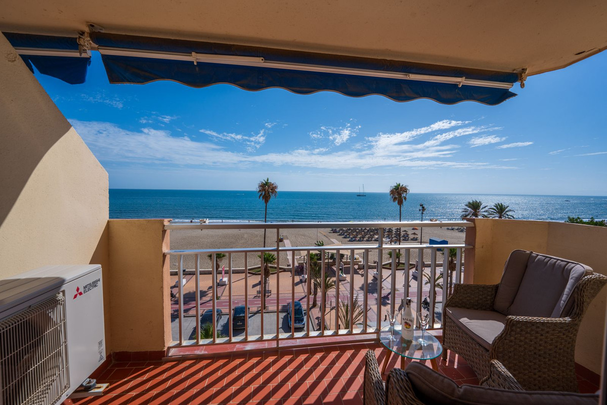 Découvrez le meilleur de la vie côtière dans cet appartement rénové situé directement sur le Paseo Marítimo el Rey de España, la promenade la plus prisée de Fuengirola. La propriété offre une vue imprenable sur la mer et la plage, et par temps clair, vous pourrez même apercevoir les sommets enneigés de la Sierra Nevada.