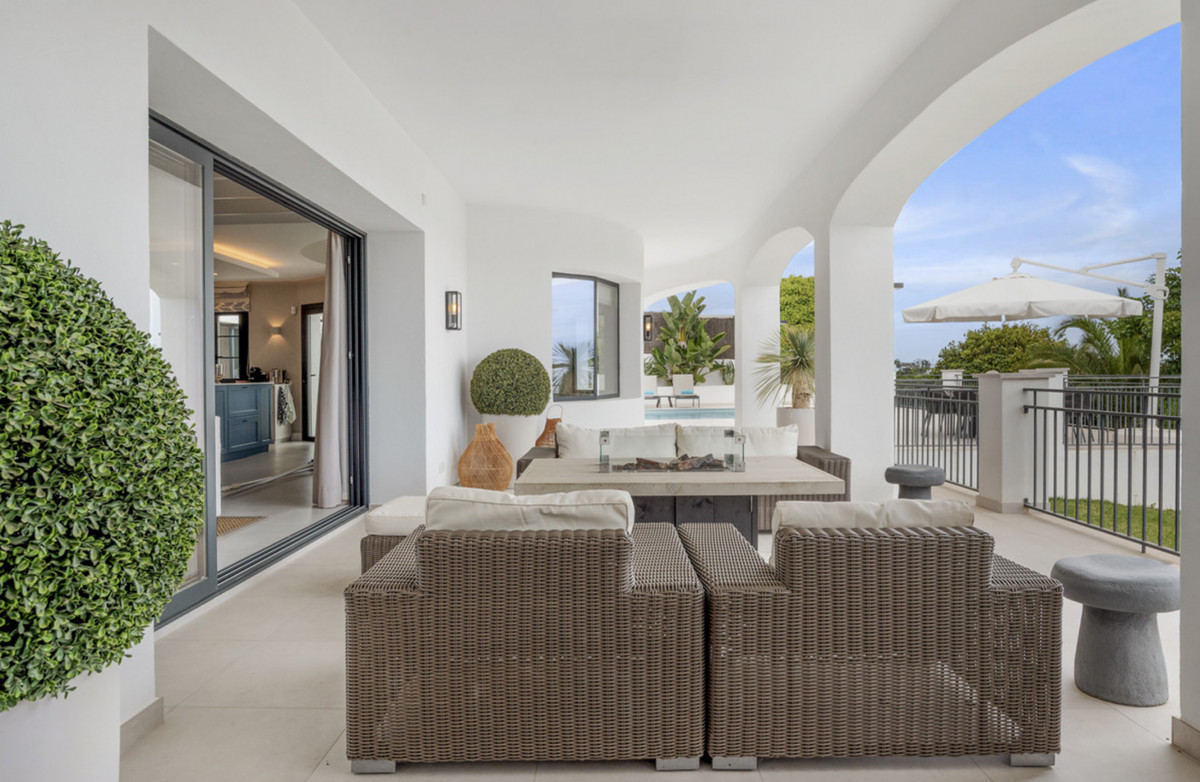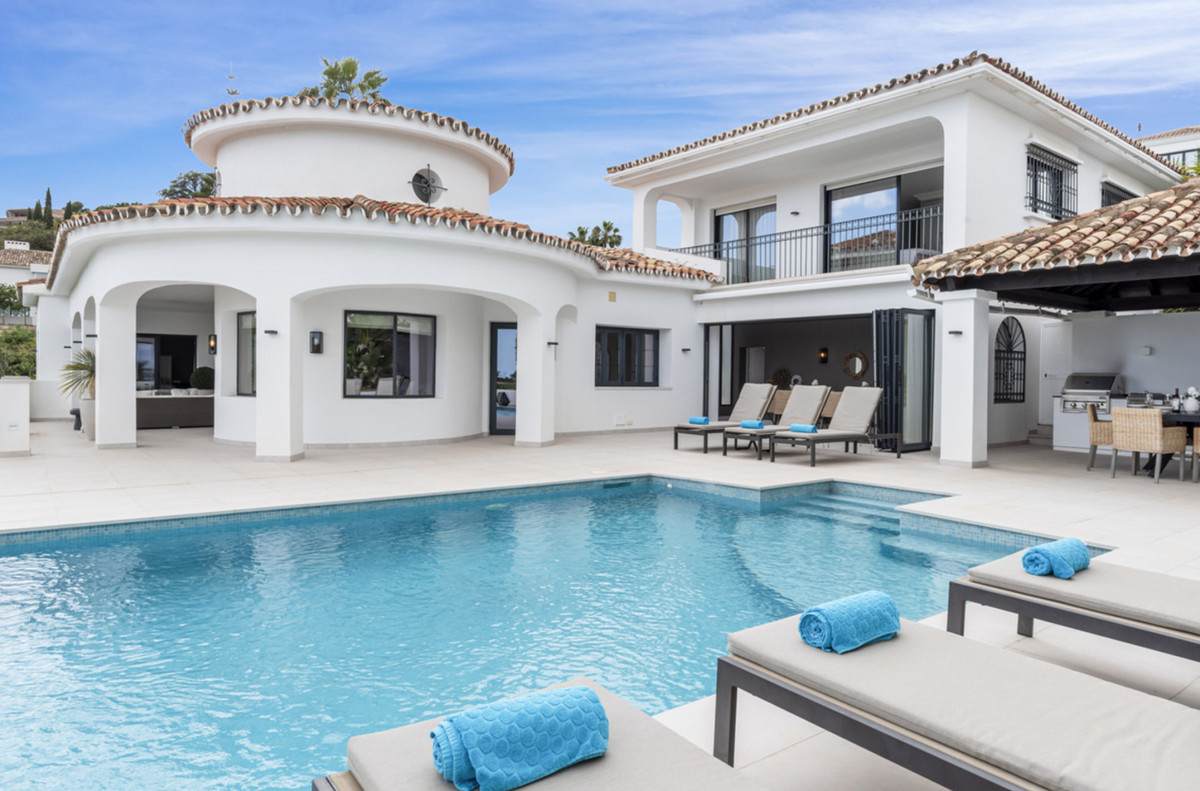 Cette villa de style andalou, entièrement rénovée selon les plus hauts standards de qualité, allie authenticité et élégance moderne. Idéalement située dans le quartier d'El Paraíso Alto, à Benahavís, elle offre une vue panoramique imprenable sur la mer et le golf, à quelques minutes de Marbella, Puerto Banús et Estepona.