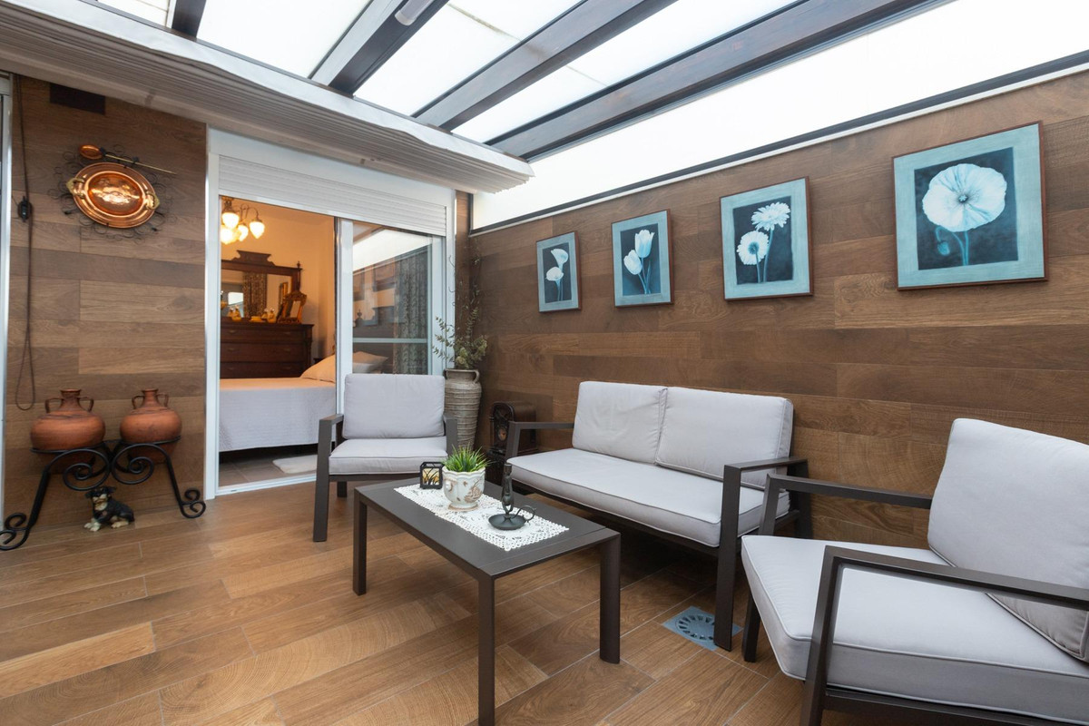 The master bedroom has access to the terrace, the bathroom is renovated, and there is another bedroom with a comfortable dressing room. The living room connects to a glazed terrace, perfect for year-round use; it even has air conditioning! And it comes with a garage and storage room included in the price.