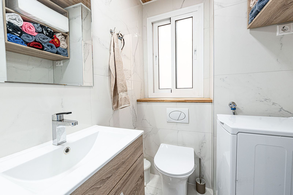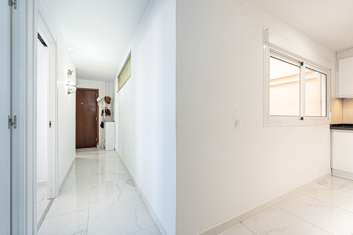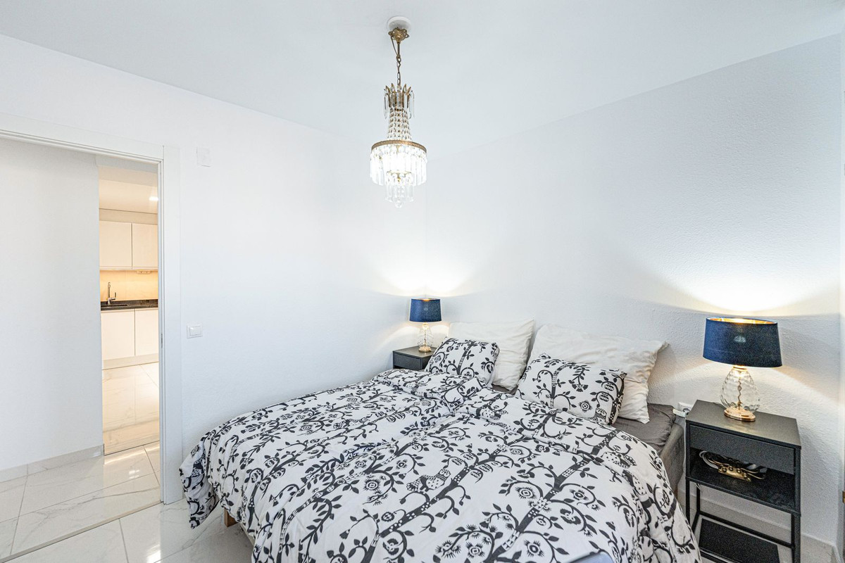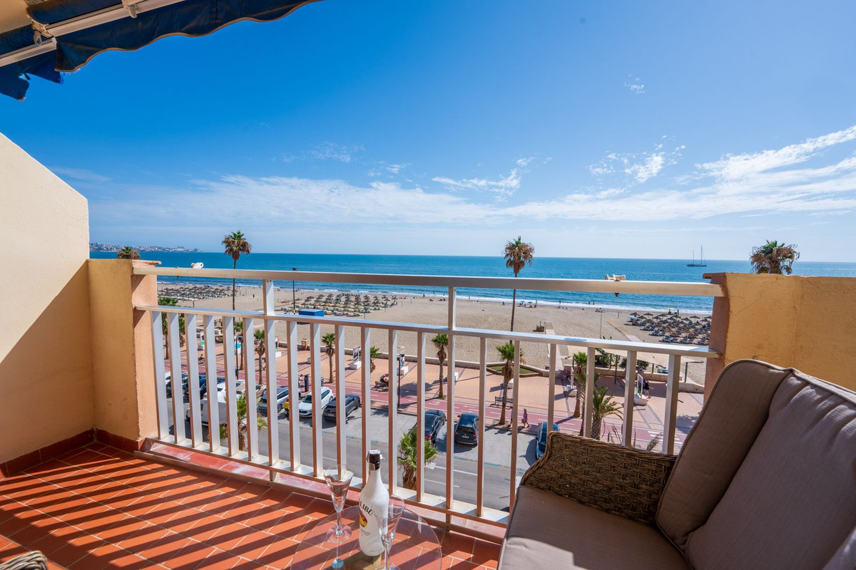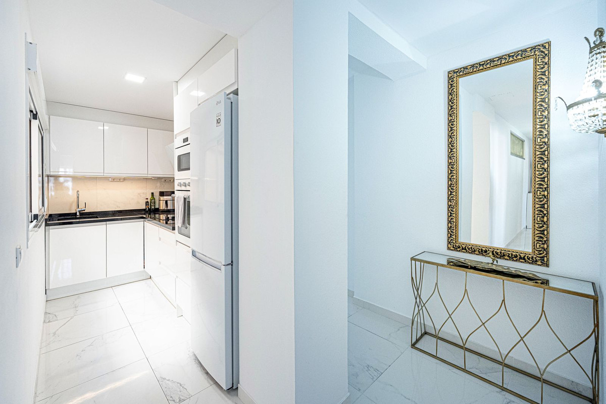 L'appartement, fraîchement rénové, mesure 90 m². La cuisine, entièrement rénovée et équipée, dispose d'électroménagers encastrés neufs de haute qualité et de plans de travail en pierre. Le salon spacieux et lumineux peut accueillir une table à manger. Il donne également accès à une grande terrasse donnant directement sur la mer. Les deux chambres spacieuses et paisibles disposent de placards intégrés et offrent une vue sur les montagnes de Mijas. L'élégante salle de bains a également été récemment rénovée.