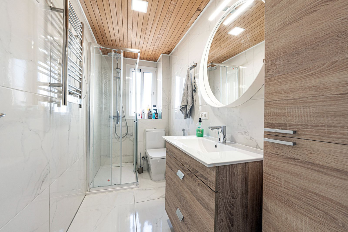 Lors de la rénovation de l'appartement, les conduites d'eau, les canalisations, les sanitaires, le tableau électrique et toutes les autres surfaces ont été rénovés. De plus, la thermopompe de climatisation a été remplacée en 2024. Les fenêtres ont été rénovées : leurs encadrements sont en aluminium blanc et le vitrage est en verre thermique. La porte de l'appartement a également été rénovée pour devenir une porte de sécurité de classe 3.