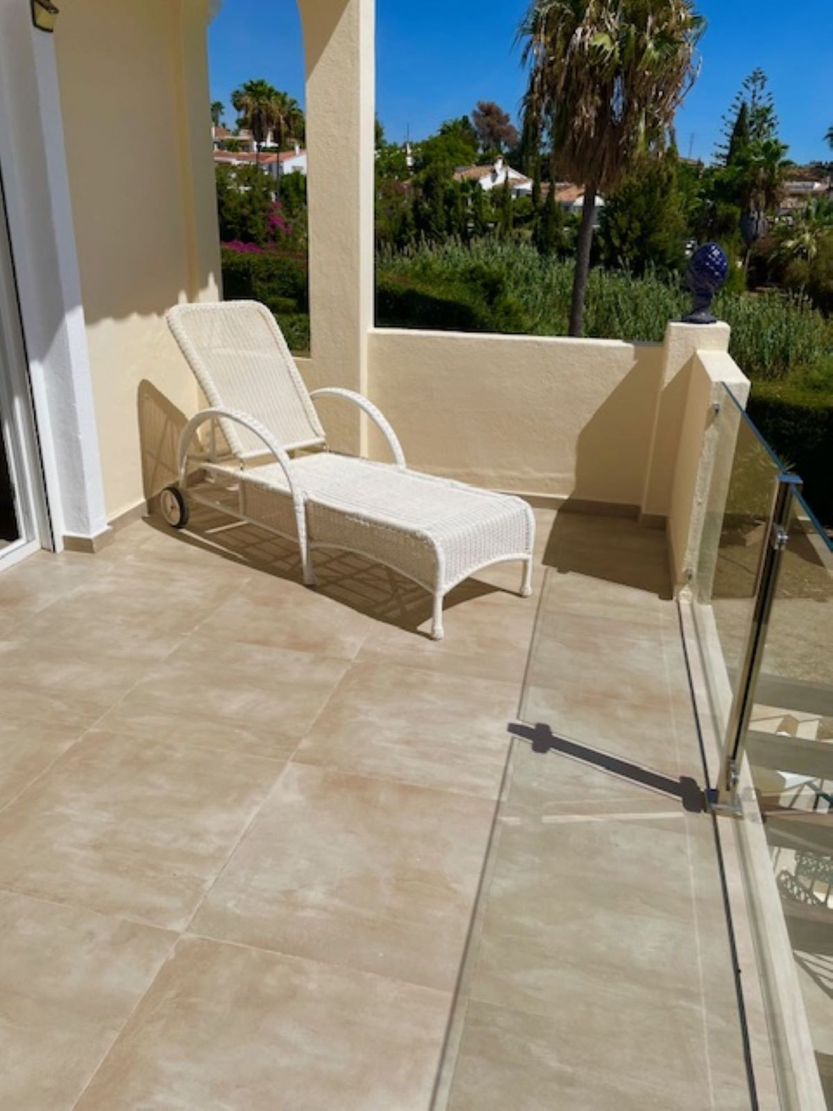 Sous la maison se trouve un appartement indépendant de 108,22 m², comprenant une grande cuisine ouverte, une grande salle de douche, une chambre et un salon ouverts, un dressing et de nombreux rangements intégrés. L'appartement du rez-de-chaussée dispose de sa propre entrée. Des portes-fenêtres pliantes s'ouvrent sur une grande terrasse privée. La propriété ne possède pas de piscine, mais un permis de construire est requis ; vous n'avez donc pas besoin d'en demander une. Le grand débarras/garage double à l'avant de la maison est clôturé, mais le mur peut être facilement ouvert. À l'entrée de la maison, vous trouverez un portail électrique et un parking pour 3 à 4 voitures. Le jardin, agrémenté d'arbres fruitiers et de grandes haies, vous offre une intimité totale. Chacun peut y apporter sa touche personnelle, notamment si vous souhaitez une piscine. C'est une toile vierge, une superbe maison entièrement rénovée, à 6 minutes en voiture du port d'Estepona, dans un endroit calme et agréable avec une vue magnifique sur Gibraltar et la campagne.