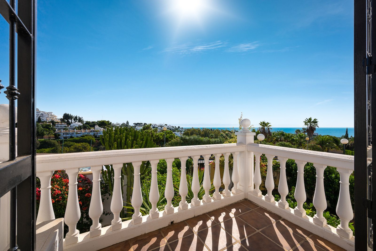 Bienvenue dans cette magnifique maison de ville sur trois niveaux située dans un quartier résidentiel calme et prisé de Calahonda, sur la Costa Mijas, à seulement 25 minutes de l'aéroport de Malaga. La propriété offre un espace de vie généreux avec une piscine privée, plusieurs terrasses et une vue imprenable sur la mer Méditerranée.