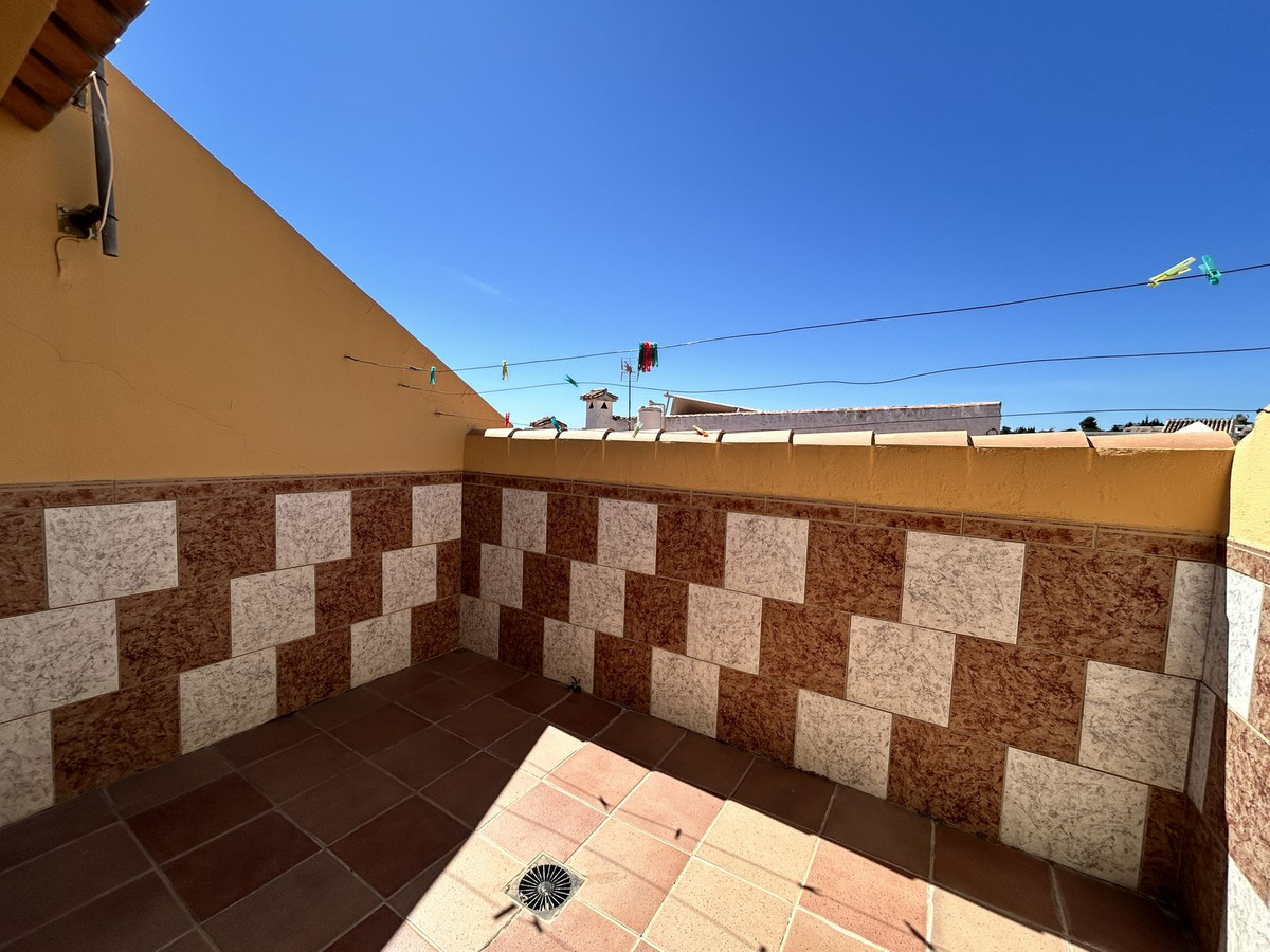 A spacious semi-detached house for sale located in the central area of Los Pacos, Fuengirola. The property has 4 bedrooms, 2 terraces, 3 bathrooms, a guest toilet, an entrance porch, an interior patio, and a private parking space.