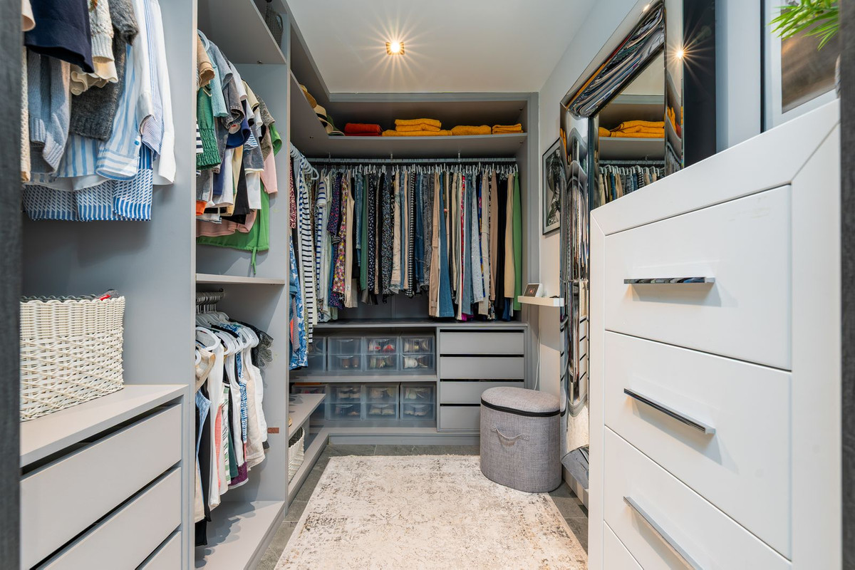 The master bedroom offers a dressing room and a bathroom en suite, while two more bedrooms share an elegantly designed bathroom.