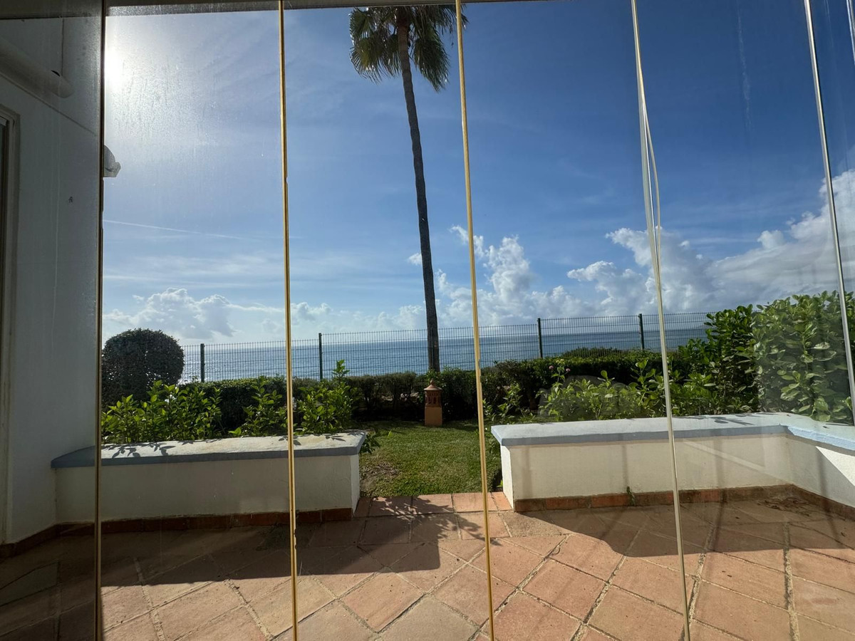 Beautiful 3-bedroom ground floor apartment facing the sea, located in one of the best residential areas in the area. A high-quality, fully furnished flat. The living/dining room has a fireplace, is very bright and opens onto a covered glassed-in terrace of over 60m² with spectacular sea views. The kitchen is separate and also enjoys the views, as does the master bedroom with its en-suite bathroom.