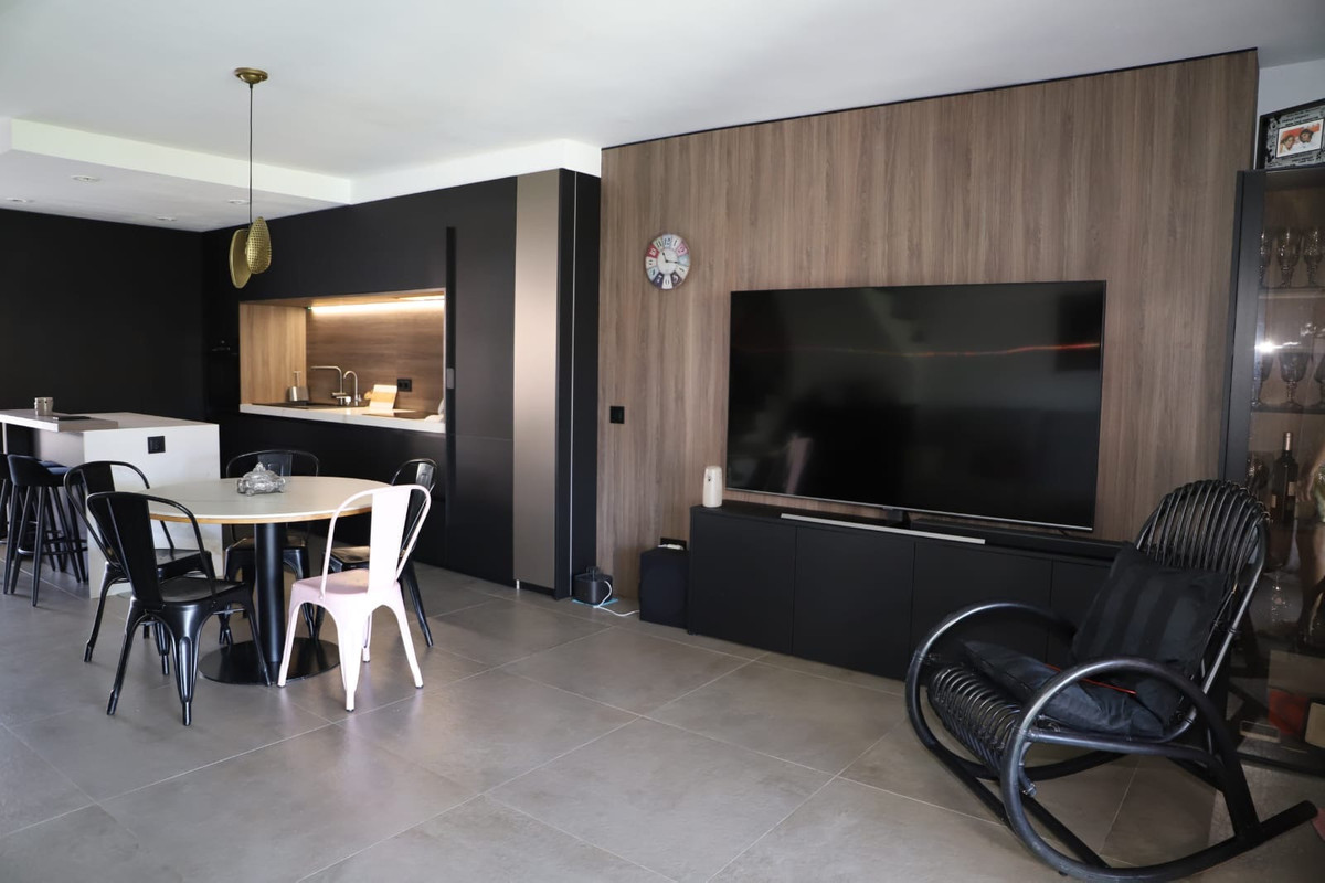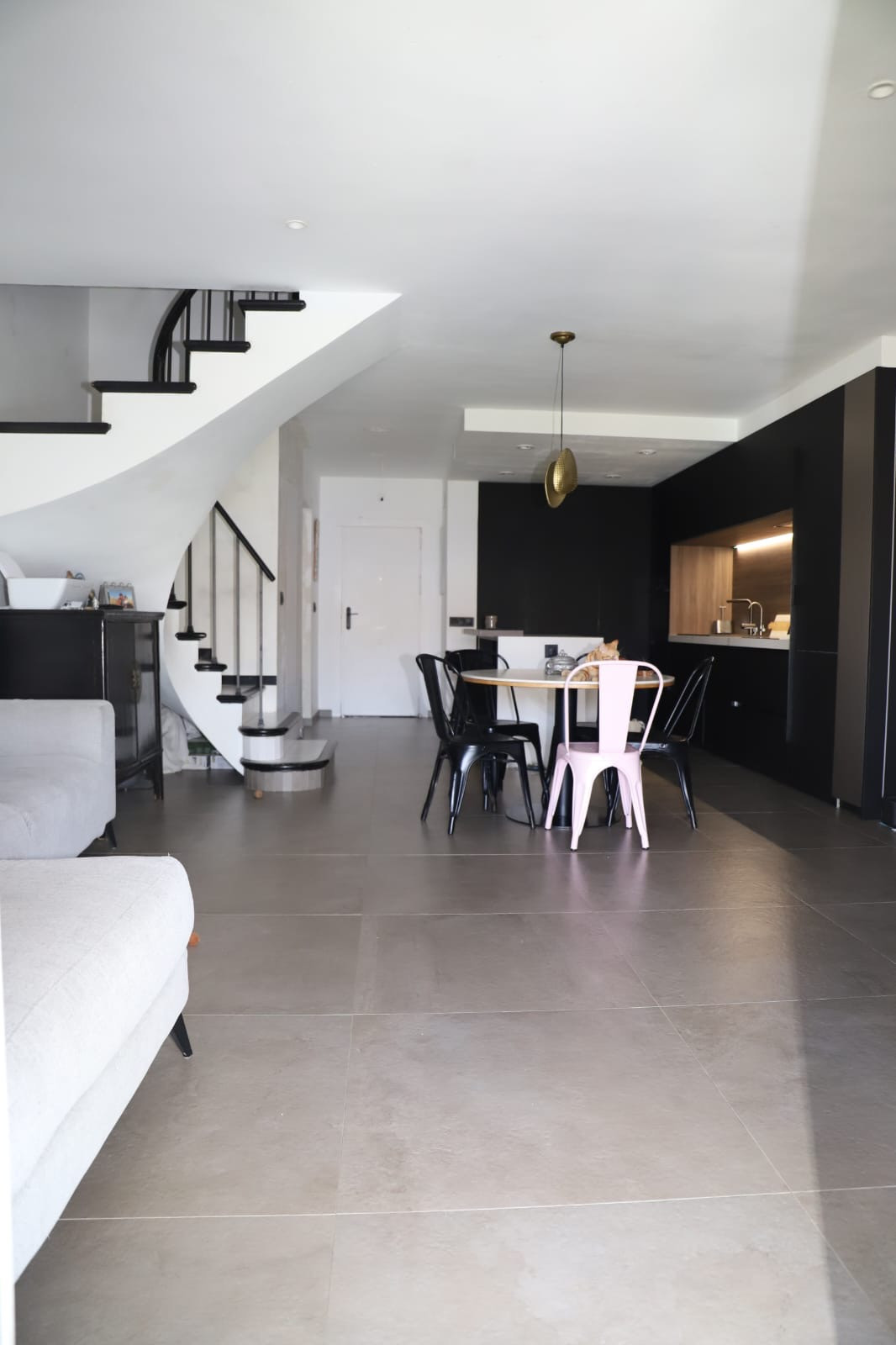 La propriété est en bon état et bénéficie de nombreux équipements modernes. La climatisation et une cheminée assurent un confort optimal toute l'année, tandis que des panneaux solaires contribuent à l'efficacité énergétique. La maison est équipée d'une connexion internet haut débit (Wi-Fi), d'un système d'alarme et d'un débarras pour plus de sécurité et de praticité. Le salon, la buanderie et la terrasse privée offrent des espaces polyvalents pour la détente et les activités quotidiennes, tandis que le patio du rez-de-chaussée agrémente l'espace de vie.