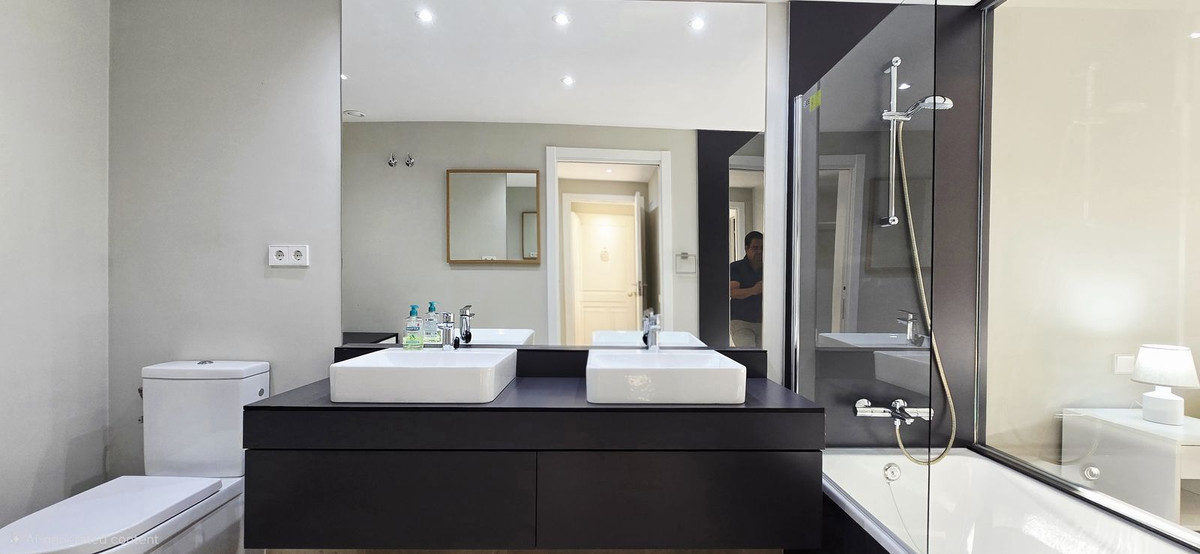 La terrasse s'étend sur deux niveaux : le niveau inférieur dispose d'un jacuzzi privé, idéal pour se détendre en toute intimité. Les deux chambres bénéficient d'un accès direct à la terrasse, baignant les pièces de lumière naturelle. La chambre d'amis est équipée de placards, tandis que la suite parentale dispose d'un dressing et d'une spacieuse salle de bains attenante avec double vasque et baignoire. Une salle de bains moderne avec douche à l'italienne complète ce bien.