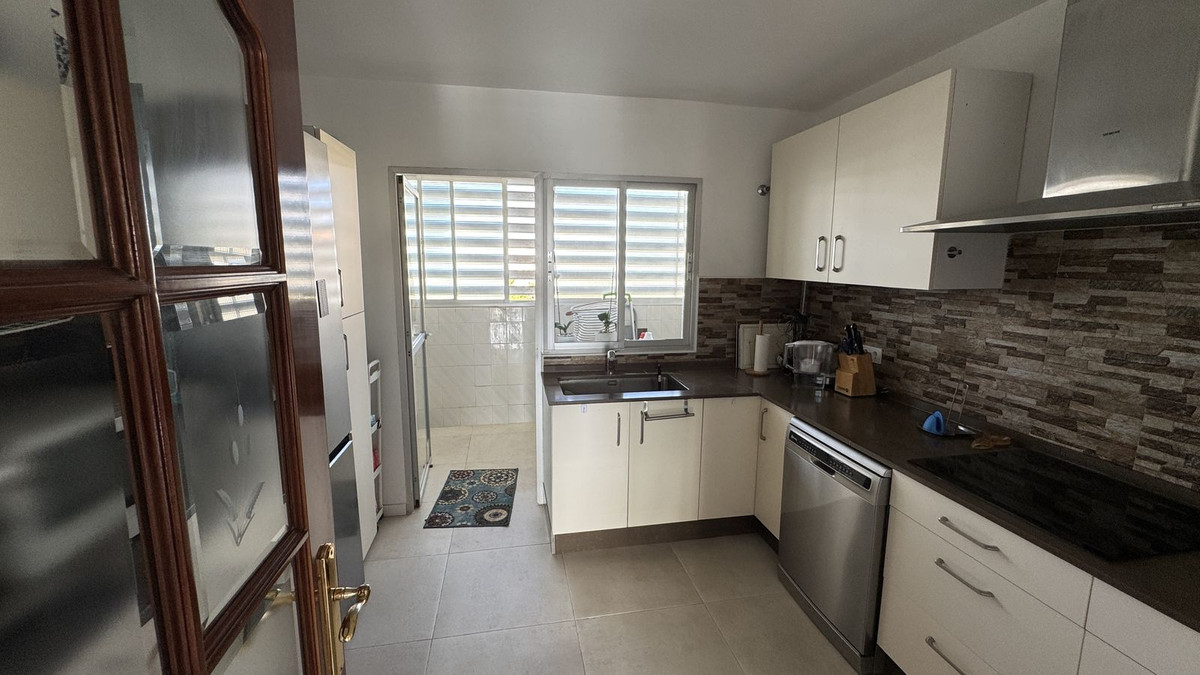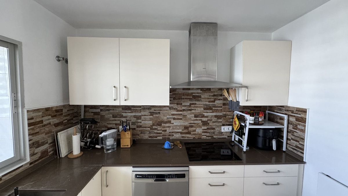 L'appartement a été entièrement rénové et arbore un magnifique sol en céramique imitation marbre, apportant une touche de propreté et de sophistication à toute la maison. La cuisine entièrement rénovée est équipée d'un plan de travail Silestone et d'électroménagers haut de gamme.