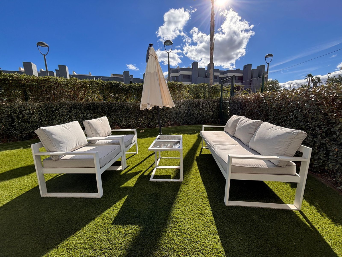 Appartement d'angle moderne de style méditerranéen, situé au rez-de-chaussée, entre Estepona et Puerto Banús, offre une occasion unique de profiter d'un style de vie exclusif dans le quartier prisé de La Resina. Doté de trois chambres et de deux salles de bains, ce bien se distingue par son design contemporain et la fluidité des espaces intérieurs et extérieurs. Son orientation plein sud assure une luminosité naturelle tout au long de la journée, tandis que le grand jardin privé avec vue sur la piscine crée un cadre idéal pour se détendre ou se retrouver en toute intimité.