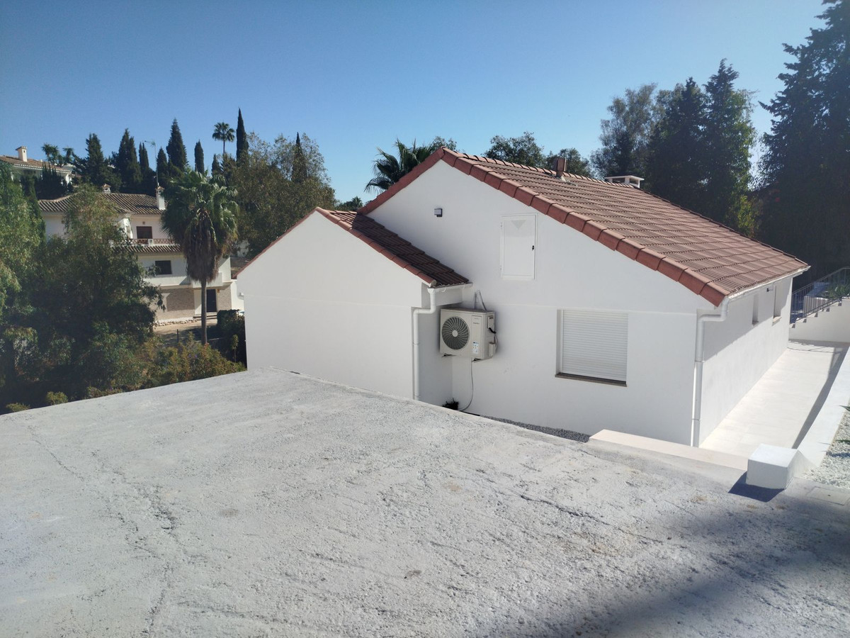 Entièrement rénovée avec des matériaux de qualité et une isolation thermique optimale, cette luxueuse villa de 4 chambres et 4 salles de bains est située dans une rue calme de Campo Mijas. Elle dispose de jardins paysagers en terrasses, d'un parking sécurisé avec portail électrique et d'un vidéophone. Deux grandes terrasses, dont une entoure la piscine récemment construite, complètent ce bien. La maison est répartie sur deux niveaux distincts : salon/salle à manger, cuisine américaine moderne, deux grandes chambres avec salle de bains privative (douche et WC) et chauffage au sol, au rez-de-chaussée. Une autre chambre indépendante avec salle de bains privative est également disponible, ainsi qu'un grand studio avec salle de bains privative et débarras au sous-sol. Les stores électriques, l'eau, l'électricité, les canalisations et les fils électriques sont neufs. Accès facile à tous les bars et restaurants d'El Coto et de Fuengirola, dans un quartier très calme avec vidéophone et alarme.