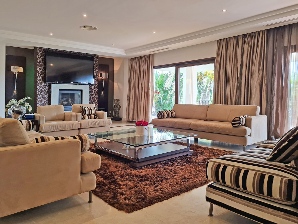 Nestled in a peaceful cul-de-sac, this exquisite villa offers exceptional privacy and breathtaking views over the golf valley towards La Concha Mountain. Built to the highest standards, it spans three levels with elegant interiors and seamless indoor-outdoor living.