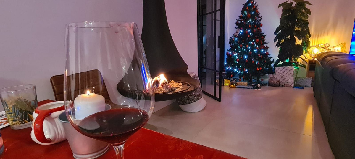 Vaste séjour-salle à manger communiquant directement avec une cuisine semi-ouverte et donnant sur un coin salon couvert d'où l'on peut profiter de la vue, même depuis un jacuzzi intégré. La cheminée suspendue et la décoration créent une ambiance très raffinée.