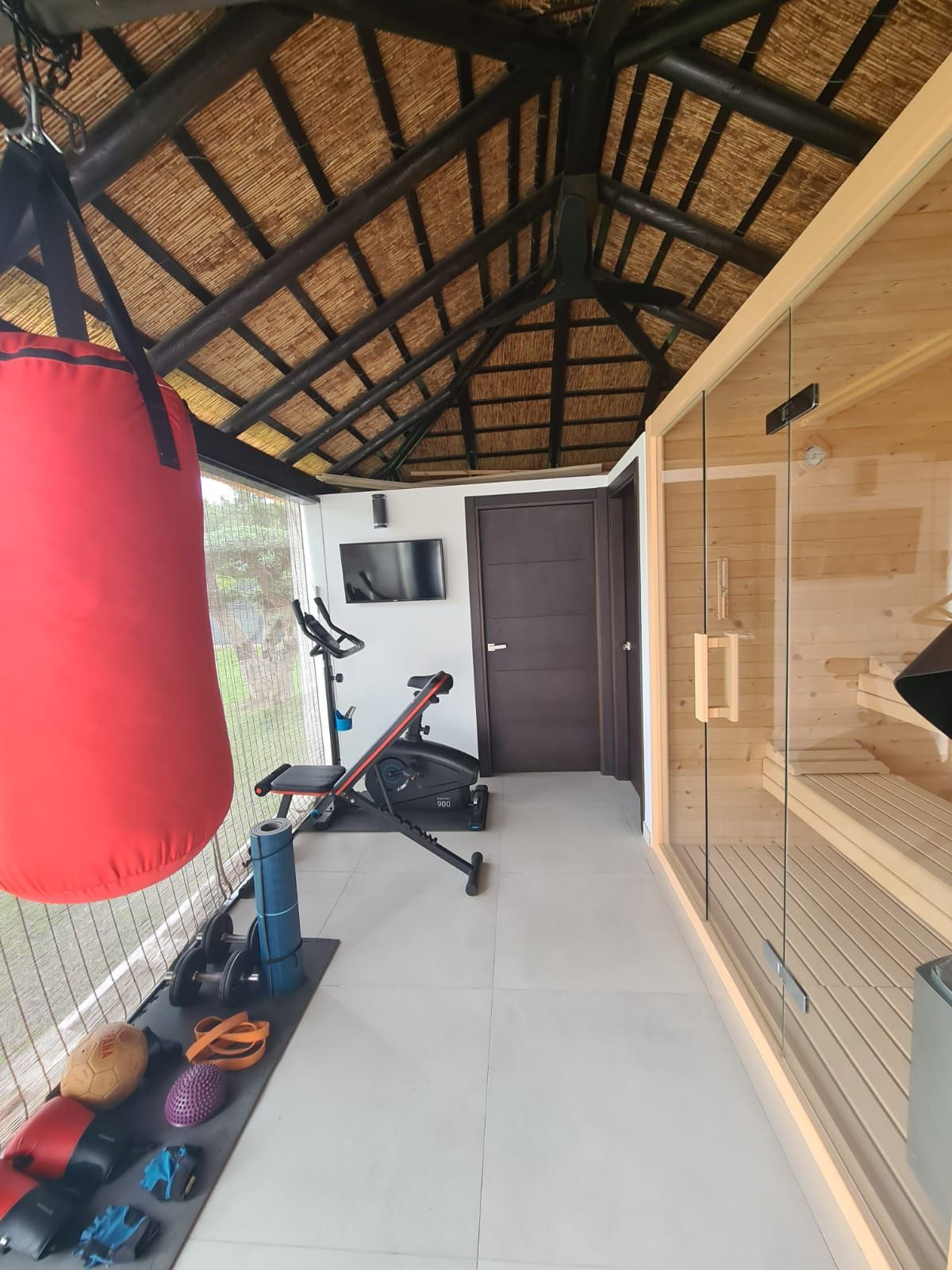 Espace salle de sport/yoga, sauna et toilettes pour invités