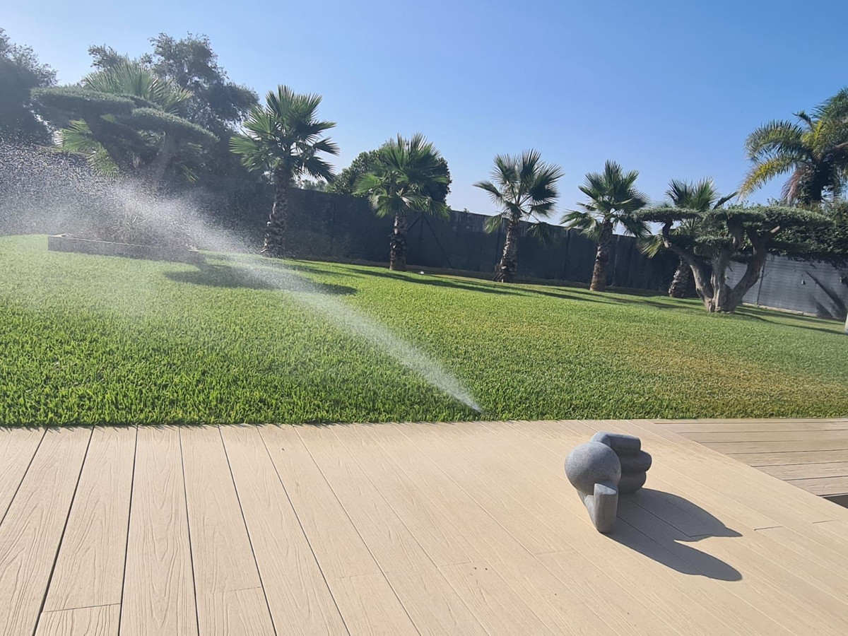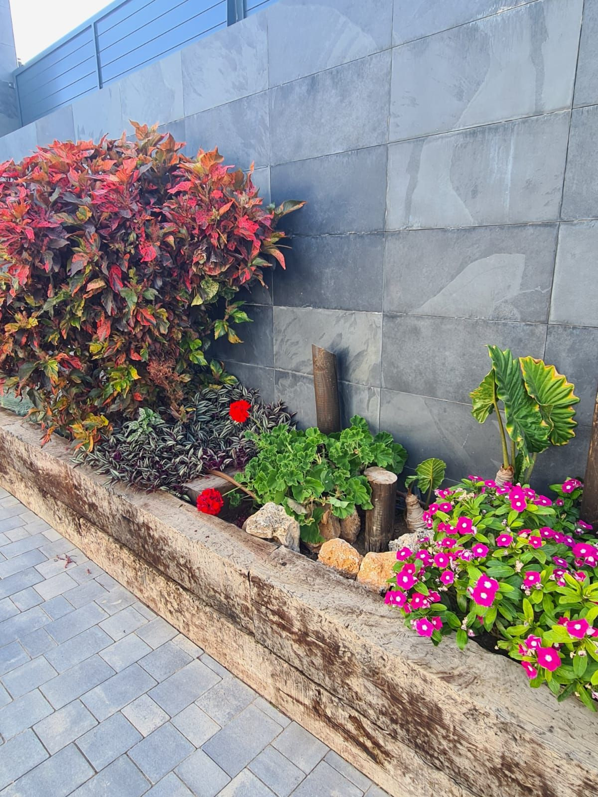 Jardin exceptionnellement bien entretenu avec des palmiers.