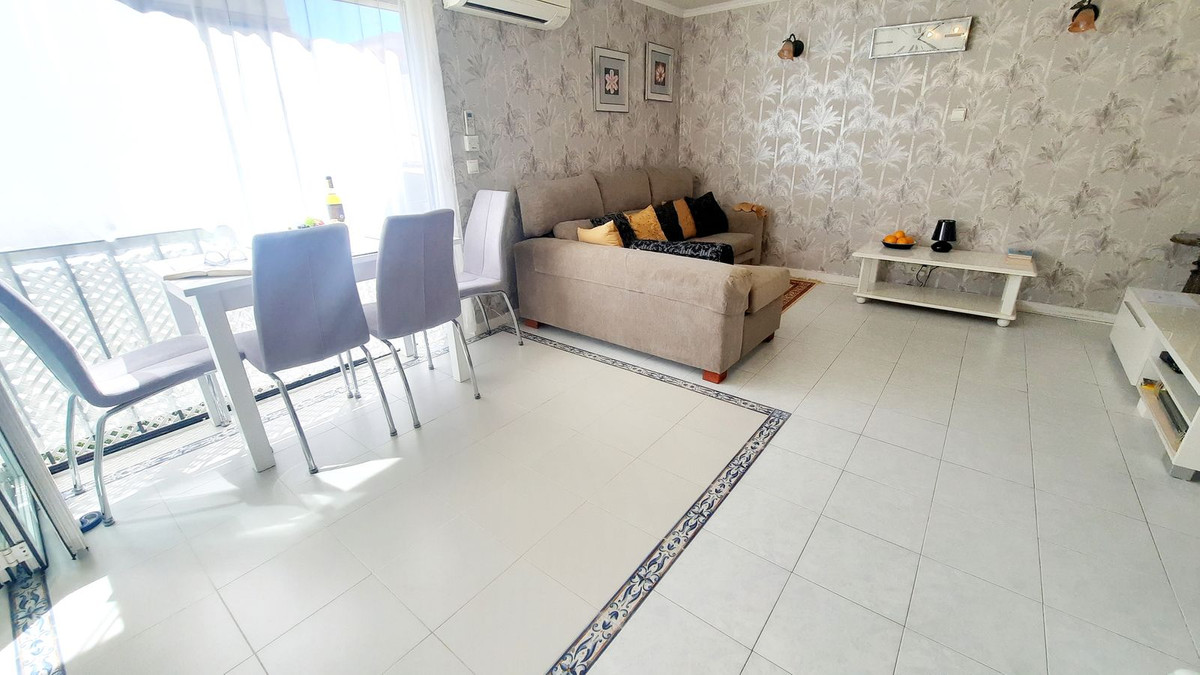 Emplacement idéal ! Appartement au dernier étage à vendre dans l'une des principales avenues de Fuengirola, très ensoleillé et lumineux. Il dispose d'un grand solarium commun avec pergola, barbecue, coin repas et transats, accessible aux voisins à tout moment. La propriété a été rénovée avec du parquet neuf dans la chambre, une nouvelle salle de douche et un salon-salle à manger ouvert avec balcon. Il y a un magnifique solarium commun. Deuxième étage sans ascenseur. Climatisation et volets électriques dans le salon. Idéal pour les vacances.