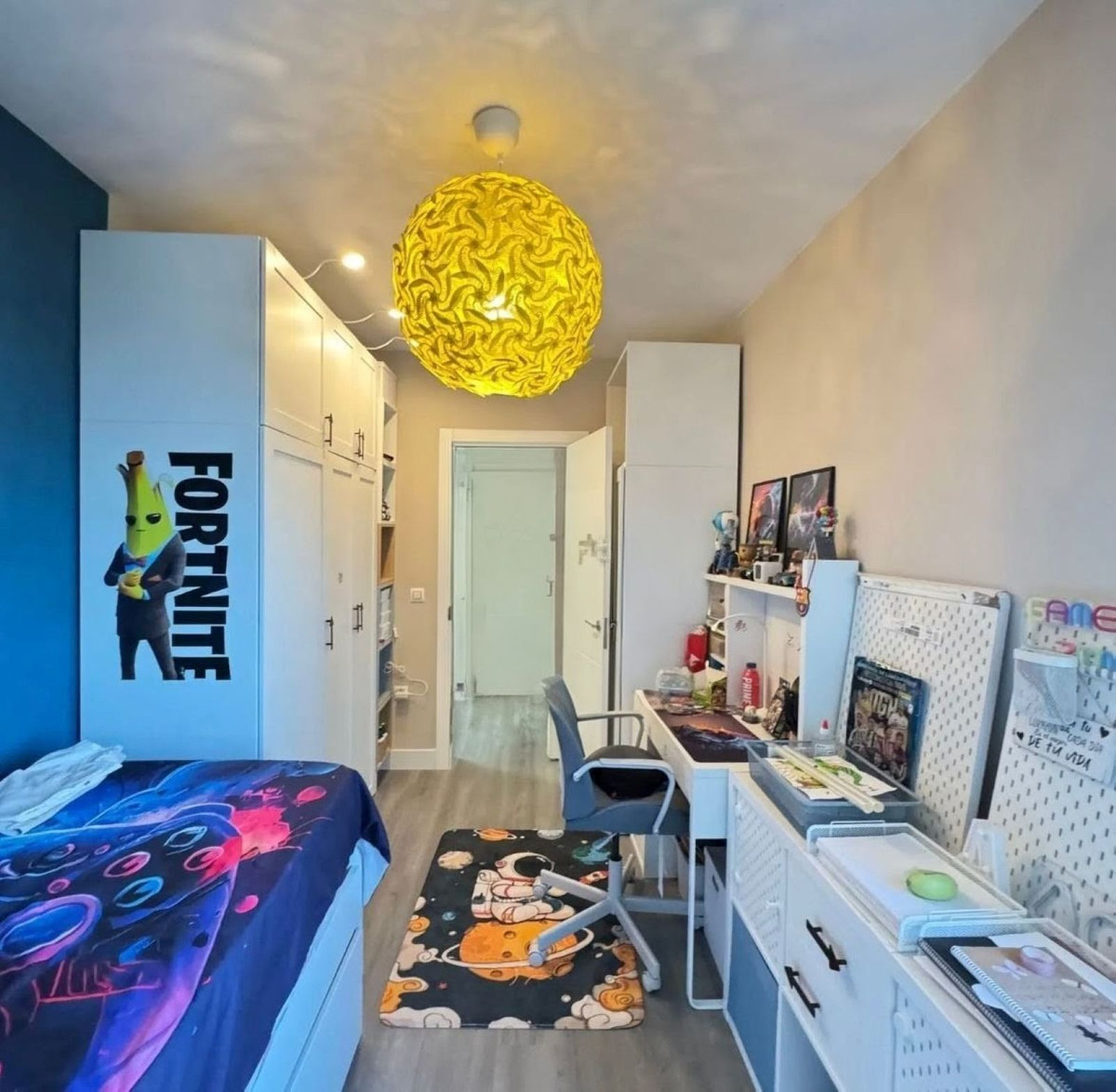 La chambre principale dispose d'un dressing sur mesure, tandis que la salle de bains, à la fois élégante et fonctionnelle, est revêtue de carrelage en porcelaine haut de gamme. La cuisine est équipée d'un plan de travail en marbre Silestone, idéal pour ceux qui apprécient à la fois le style et la praticité.