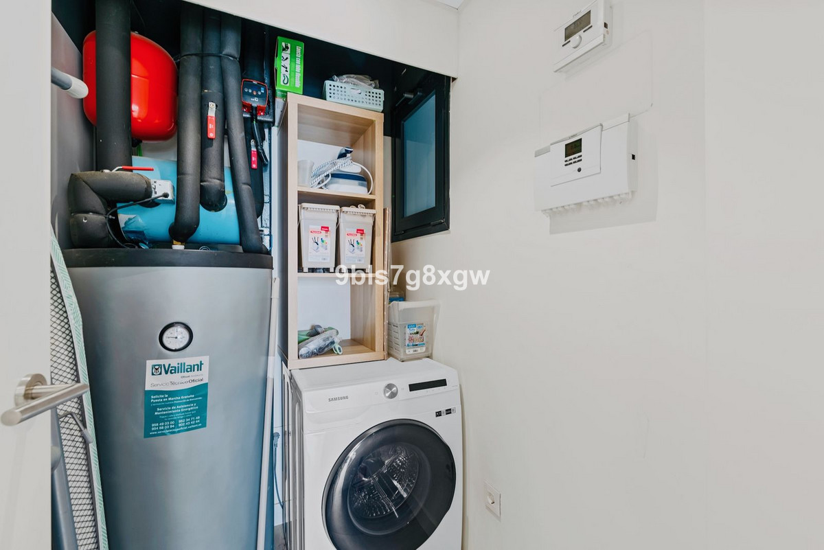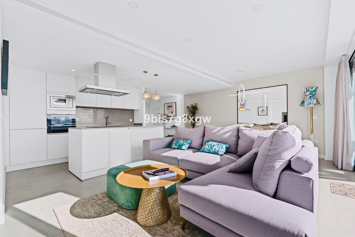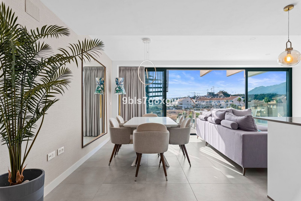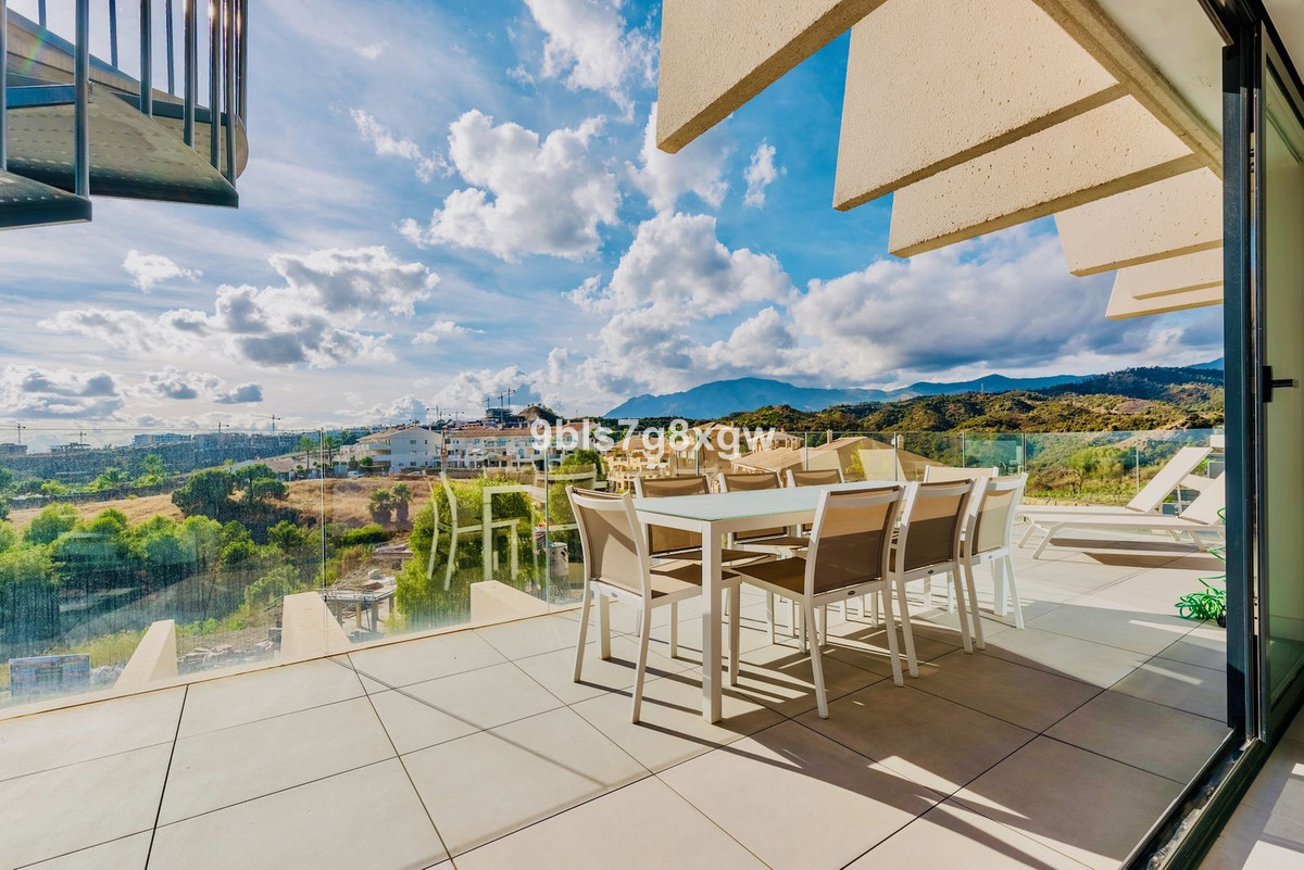 Cet appartement se distingue par sa luminosité et son agencement fluide. De grandes baies vitrées créent une transition harmonieuse entre l'intérieur et l'extérieur. La cuisine entièrement équipée (avec buanderie séparée) s'ouvre sur un vaste séjour/salle à manger, donnant sur une grande terrasse privative de 31 m² exposée sud-ouest, partiellement couverte : l'endroit idéal pour dîner en plein air, se détendre avec un livre ou simplement admirer la vue panoramique sur la mer, Gibraltar et le zoo de Selwo. À la tombée de la nuit, après le coucher du soleil, le panorama devient véritablement magique.