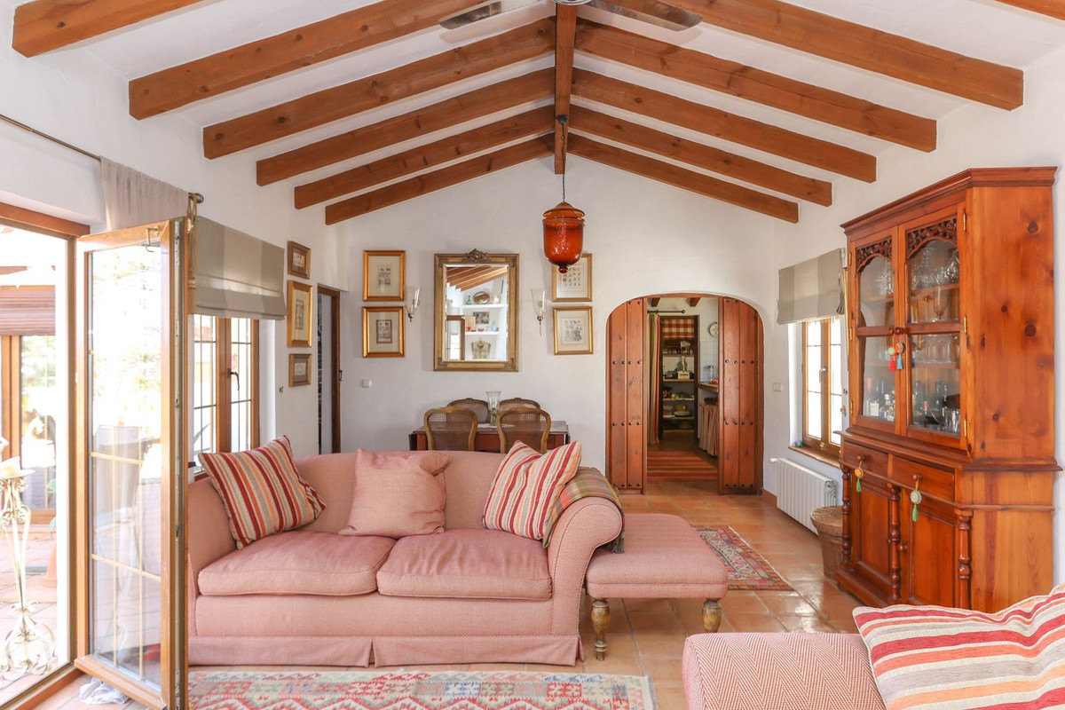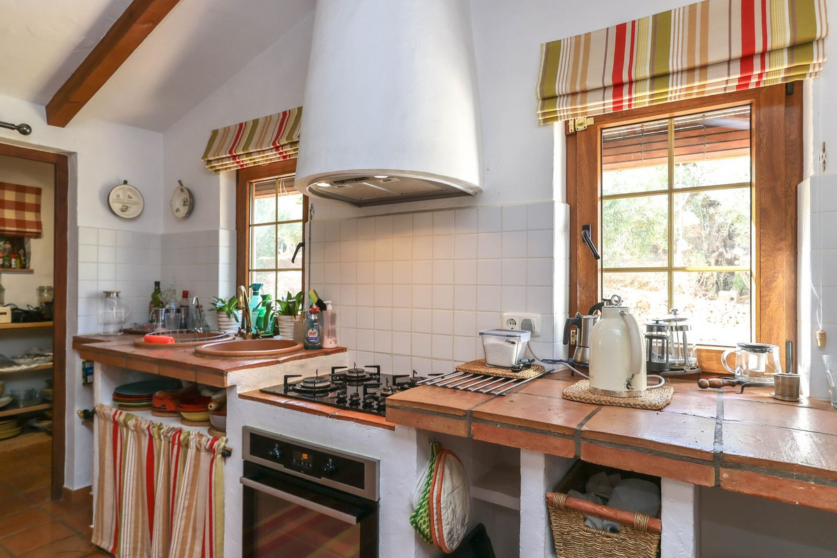 La cuisine traditionnelle de style andalou, attenante au salon, comprend un garde-manger très pratique. De là, une terrasse ombragée offre un havre de paix idéal pour se détendre et profiter du cadre naturel.