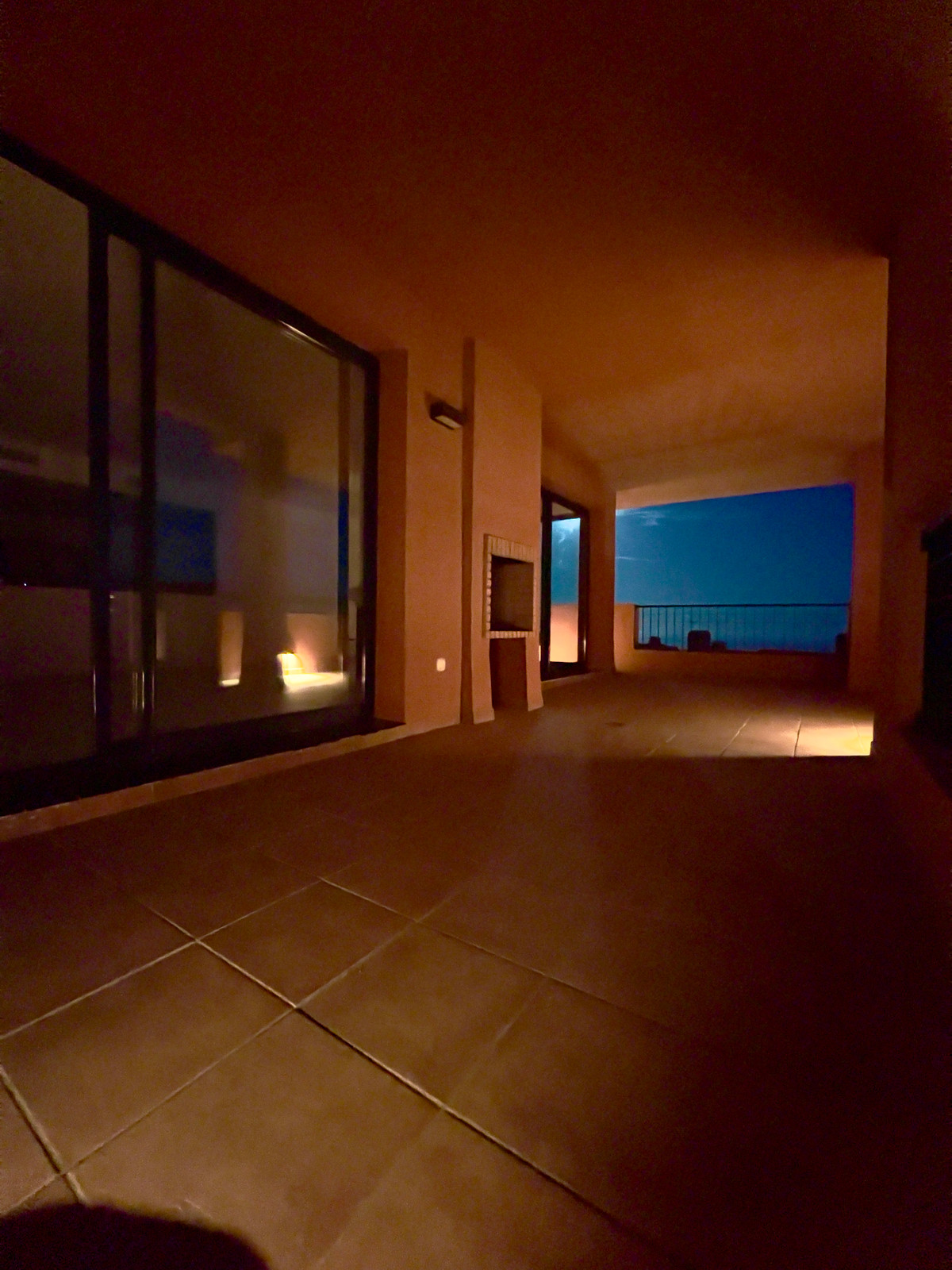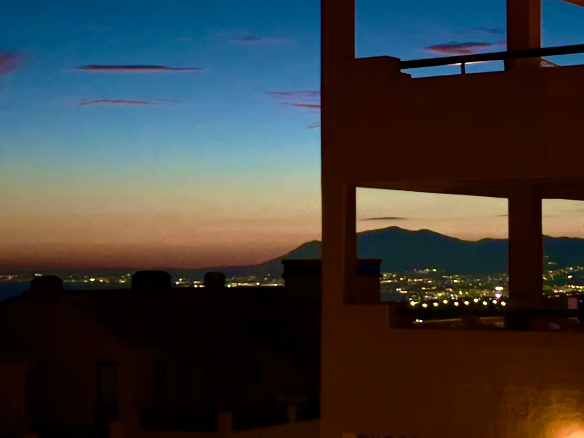 Le cœur de la maison est son vaste séjour-salle à manger, agrémenté d'une cheminée et d'une cuisine ouverte conçue pour la convivialité. La lumière naturelle inonde chaque recoin, se fondant harmonieusement avec les vues spectaculaires sur la mer, Gibraltar et l'Afrique.