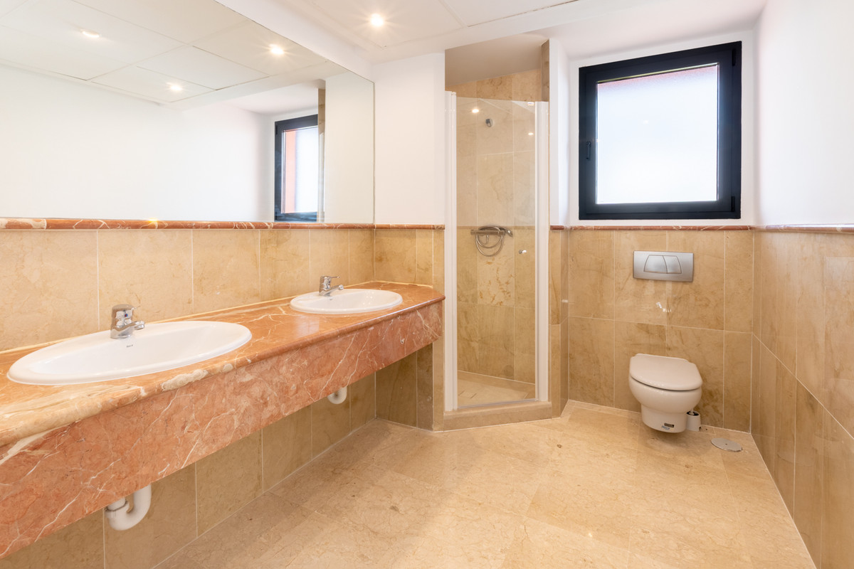 Ses deux chambres spacieuses ont été conçues pour une détente absolue : la suite parentale dispose d’une salle de bains et d’un dressing, tandis que la seconde chambre bénéficie d’une salle de bains complète. Le tout est sublimé par des sols en marbre, des finitions haut de gamme et des placards intégrés qui confèrent à la fois ordre et élégance.