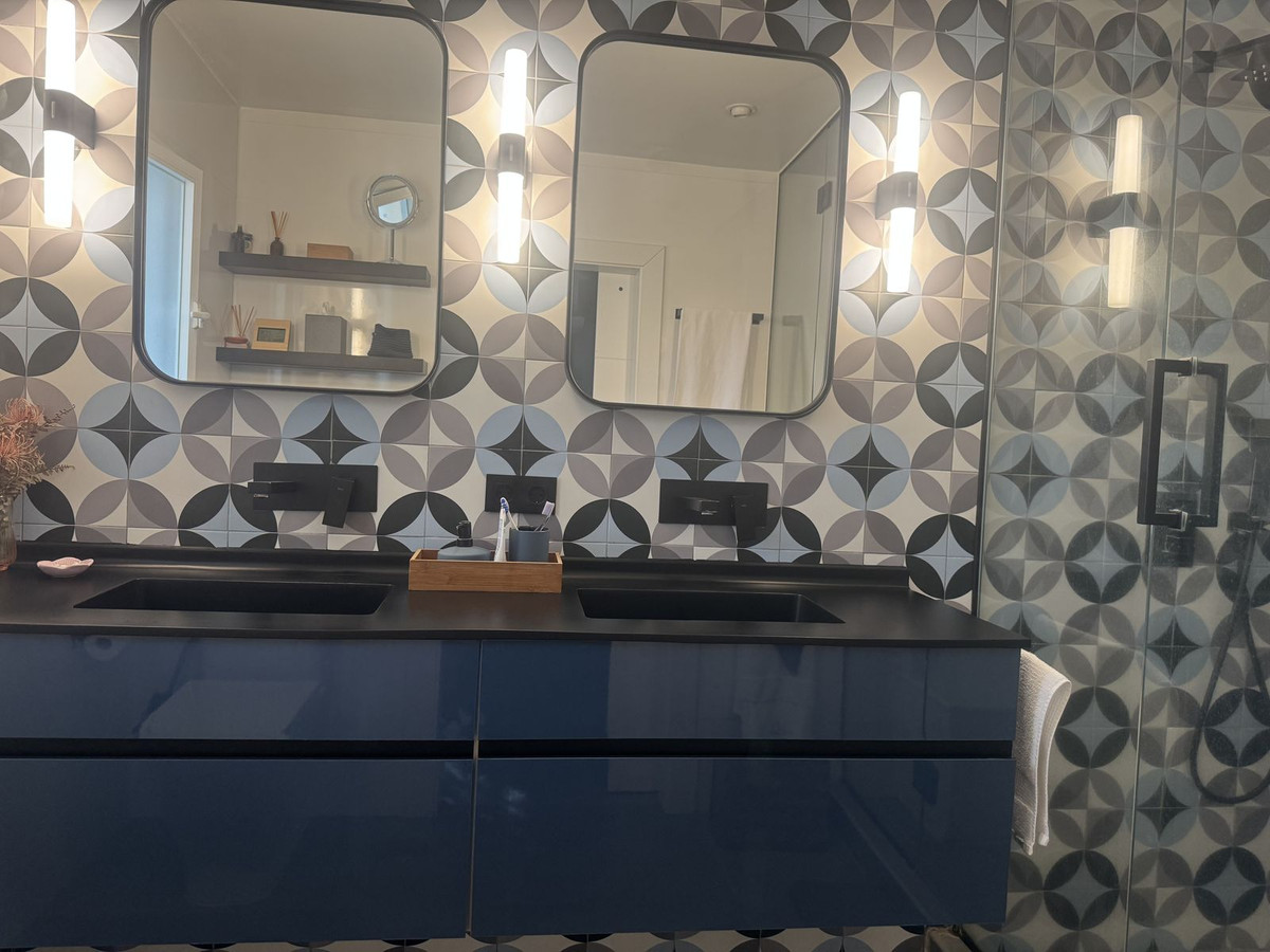 Rez-de-chaussée : hall d’entrée, salon, salle à manger séparée, trois chambres, dont deux avec salle de bains, toilettes invités, patio et véranda exposée au sud avec vue sur la mer.