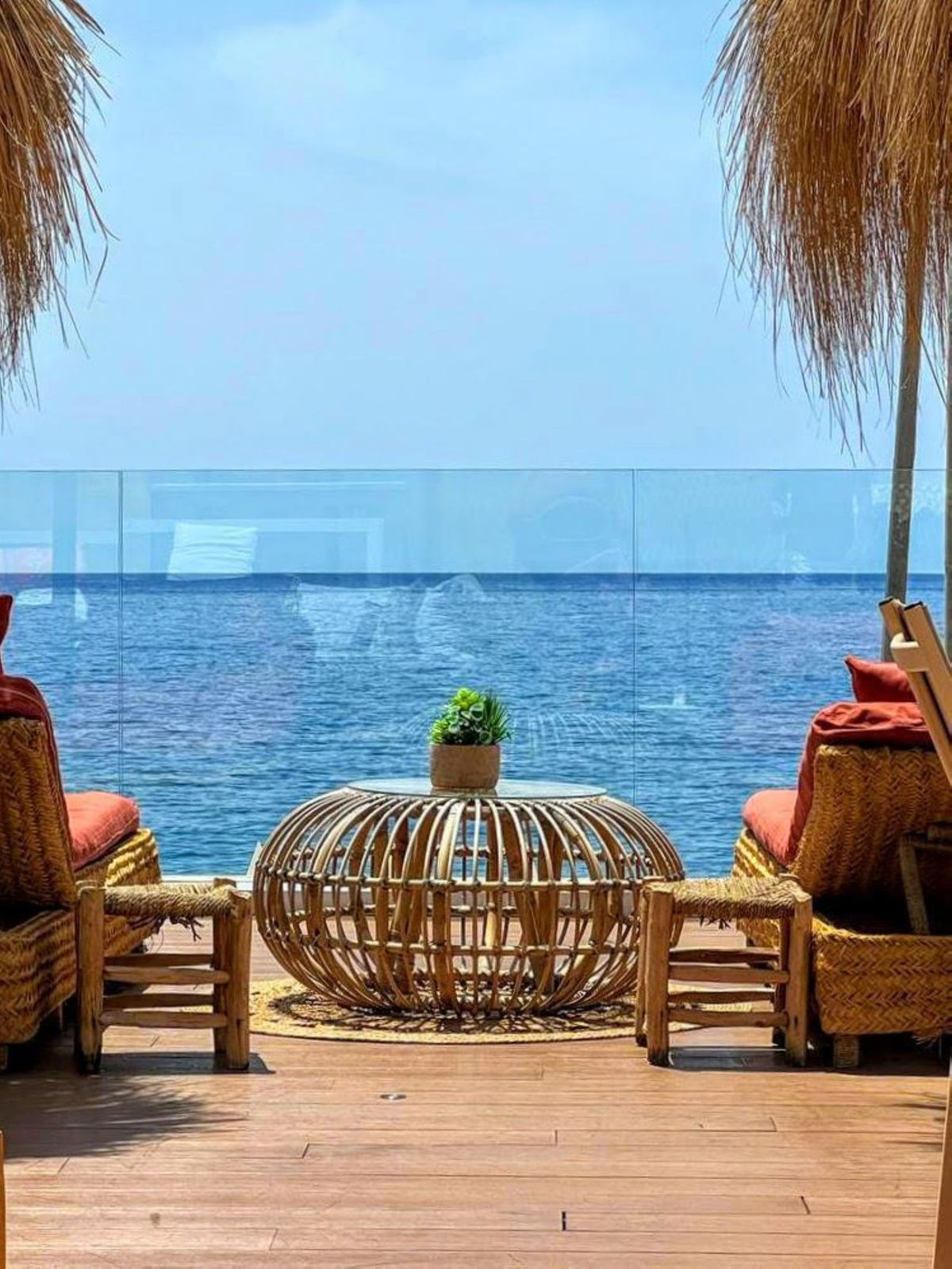 Cet élégant immeuble abrite trois appartements touristiques haut de gamme, équipés d'un ascenseur, ainsi qu'un bar sophistiqué sur le toit offrant une vue sur la mer.