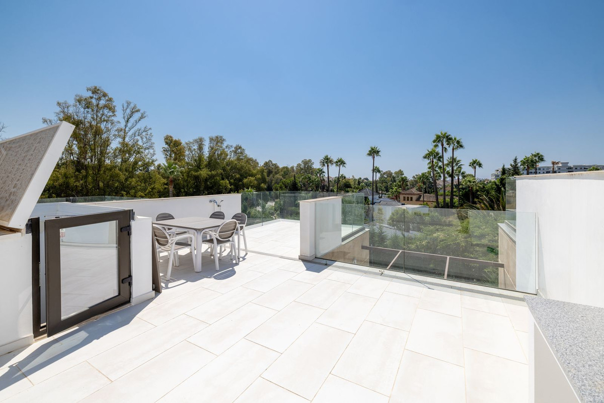 Au cœur de Nueva Andalucía, à deux pas de Puerto Banús, se dresse cette maison de ville exclusive de 232 m² sur un terrain de 304 m², répartie sur quatre niveaux. Elle allie design contemporain, fonctionnalité et le charme incomparable du style de vie méditerranéen. Orientée sud-est, la maison bénéficie d'une luminosité naturelle abondante tout au long de la journée, sublimant ses intérieurs spacieux et son confort exceptionnel.
