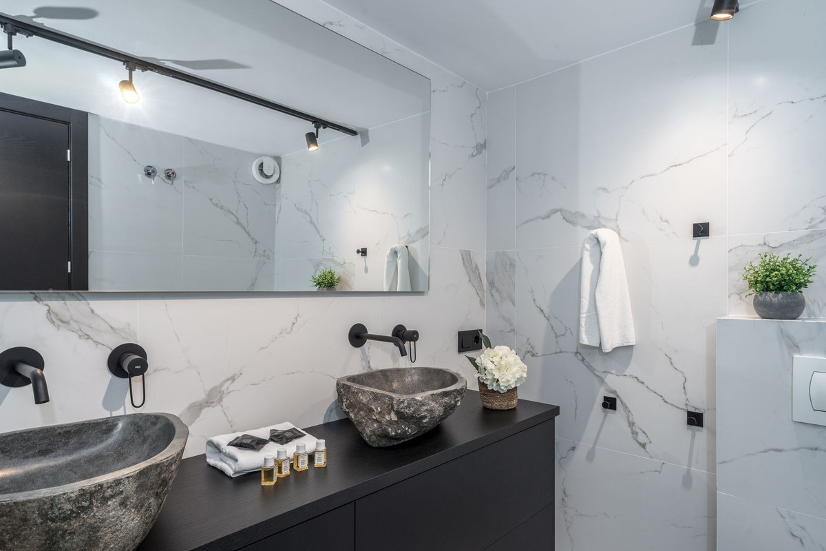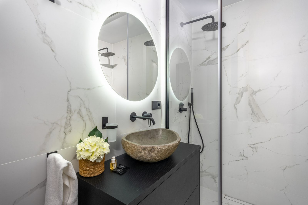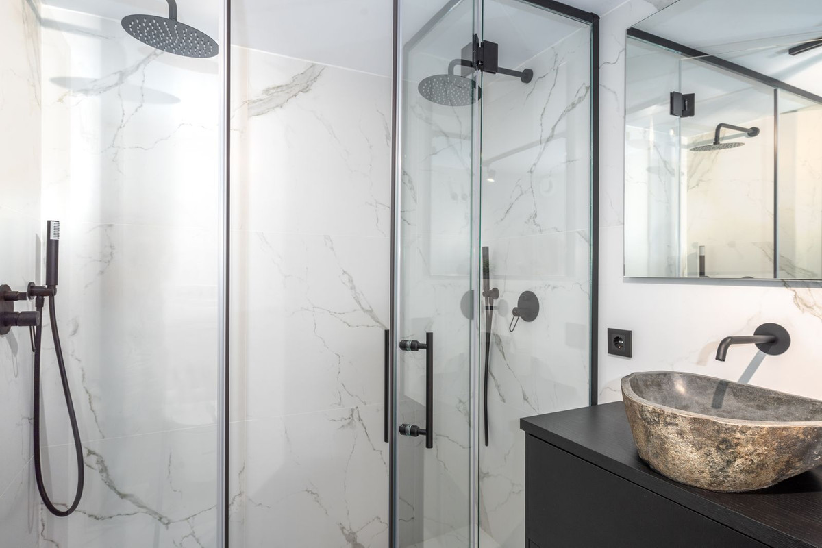 - Économe en énergie grâce au double vitrage et au sol en marbre