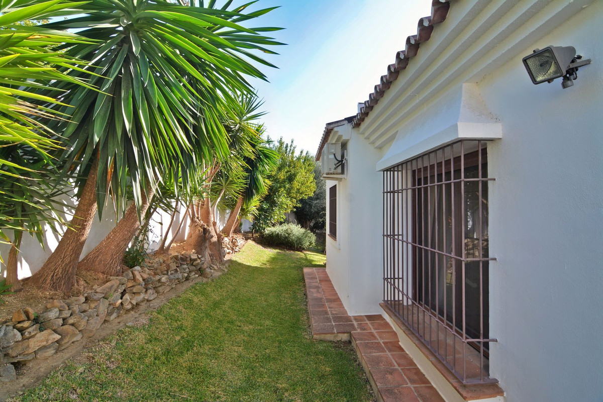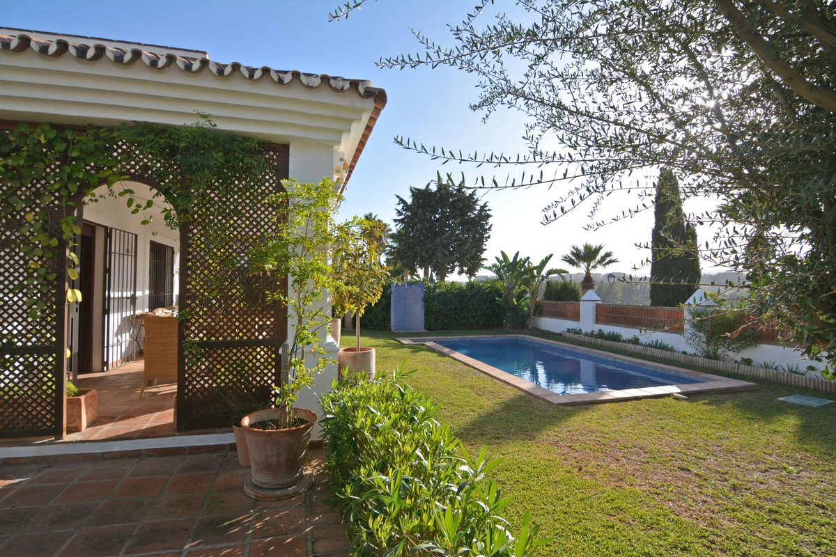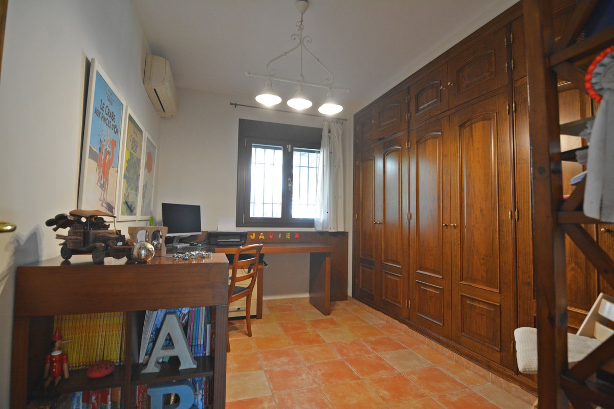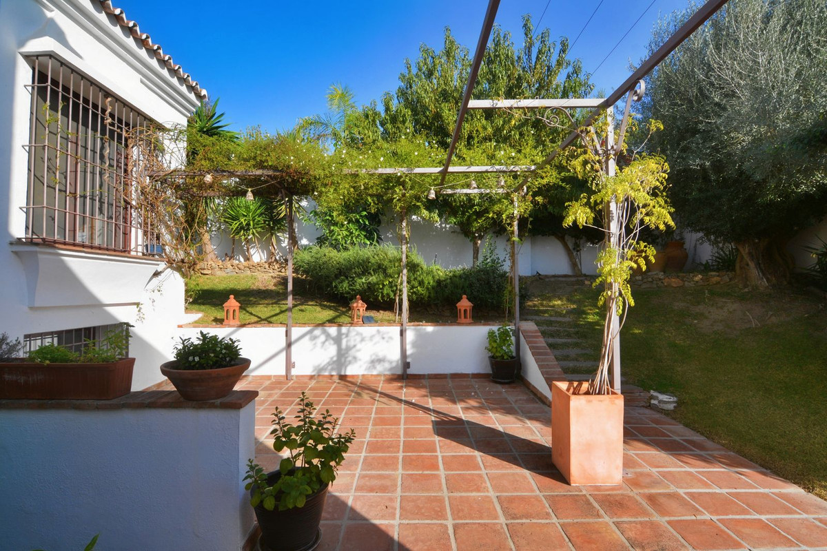 La propriété se situe sur un terrain de 858 m² avec un jardin arboré et une piscine privée, idéal pour profiter du climat ensoleillé de la Costa del Sol. Au rez-de-chaussée, un séjour spacieux et lumineux, donnant directement sur une véranda couverte, invite à la détente et aux moments conviviaux en plein air. La cuisine indépendante, grande et fonctionnelle, s'ouvre sur une charmante terrasse arrière, parfaite pour les petits-déjeuners ensoleillés. Ce niveau comprend également des toilettes invités.