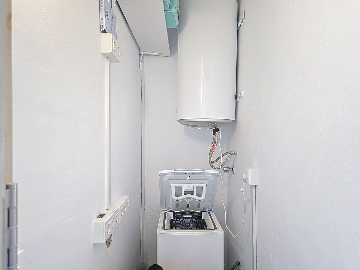 Au rez-de-chaussée, la lumière naturelle inonde le séjour et sa cuisine ouverte, entièrement équipée et conçue avec un souci du détail. De là, on accède à un salon cosy et à une charmante terrasse andalouse, idéale pour un petit-déjeuner au soleil ou un dîner tranquille en plein air. On y trouve également une salle de bains avec douche, un débarras et une chambre pouvant servir de bureau ou d'espace multifonctionnel.