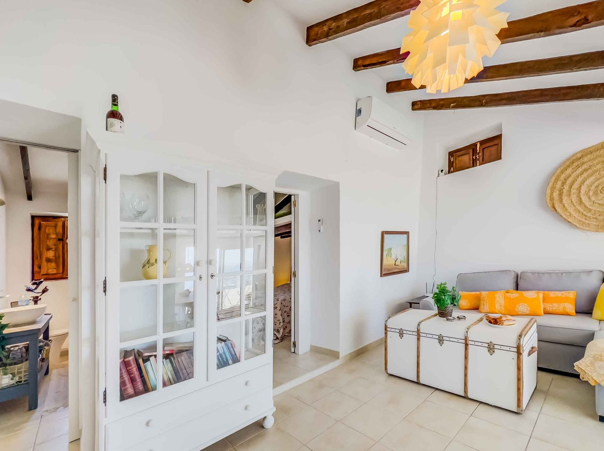 À l'intérieur, la propriété comprend deux chambres spacieuses et deux salles de bains modernes, dont une suite parentale. L'intérieur, entièrement meublé, allie confort et élégance, avec une cuisine équipée de tous les appareils modernes nécessaires. Les espaces de vie s'ouvrent sur une terrasse privée, idéale pour profiter du calme environnant et des vues imprenables.