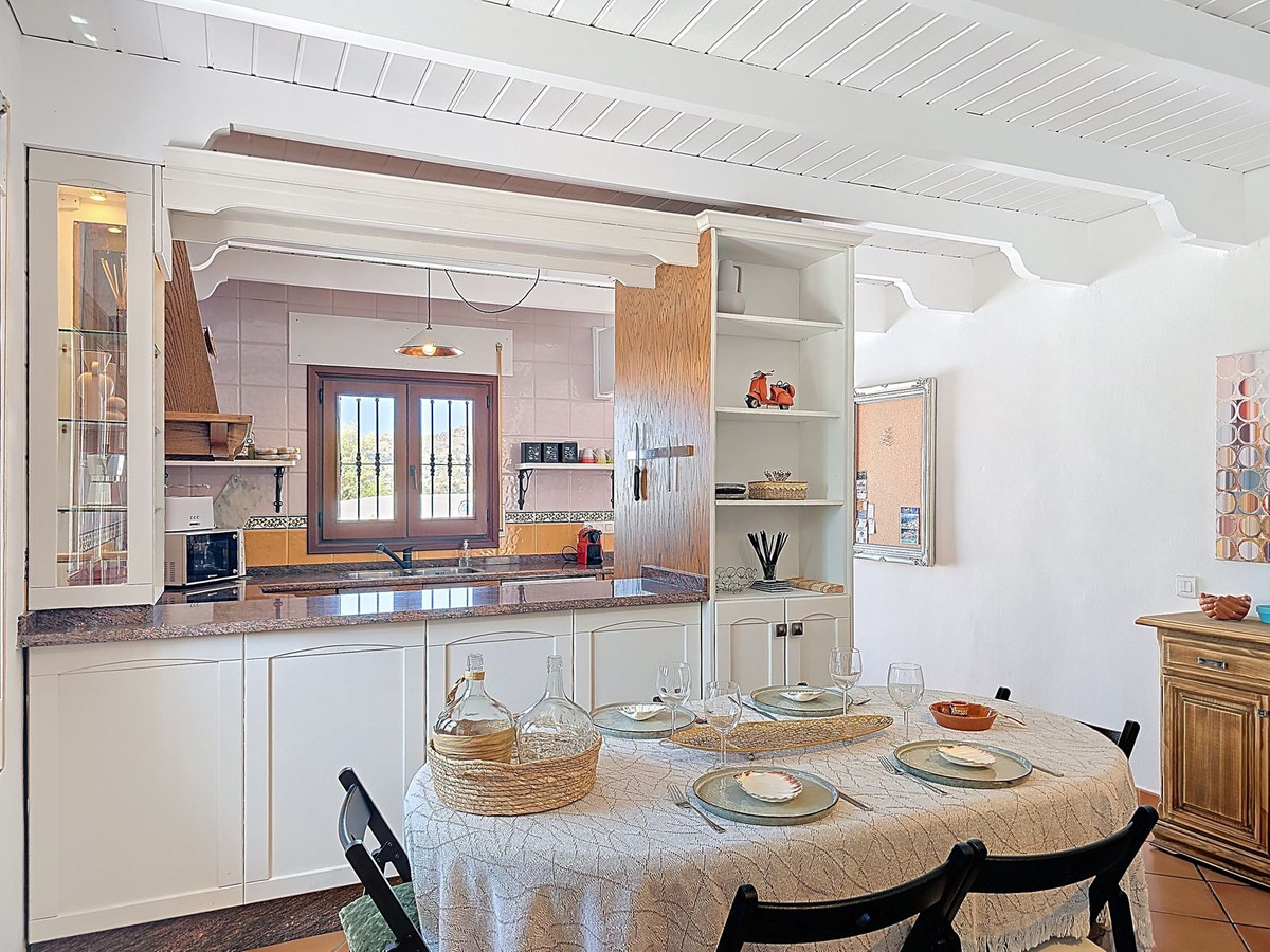 La maison principale comprend trois chambres lumineuses et une salle de bains moderne récemment rénovée. L'espace de vie ouvert communique harmonieusement avec une cuisine entièrement équipée et de vastes terrasses, créant ainsi une transition fluide entre l'intérieur et l'extérieur. Parmi les améliorations récentes, on note l'installation de nouveaux climatiseurs et de robinetterie Grohe haut de gamme dans la salle de bains.